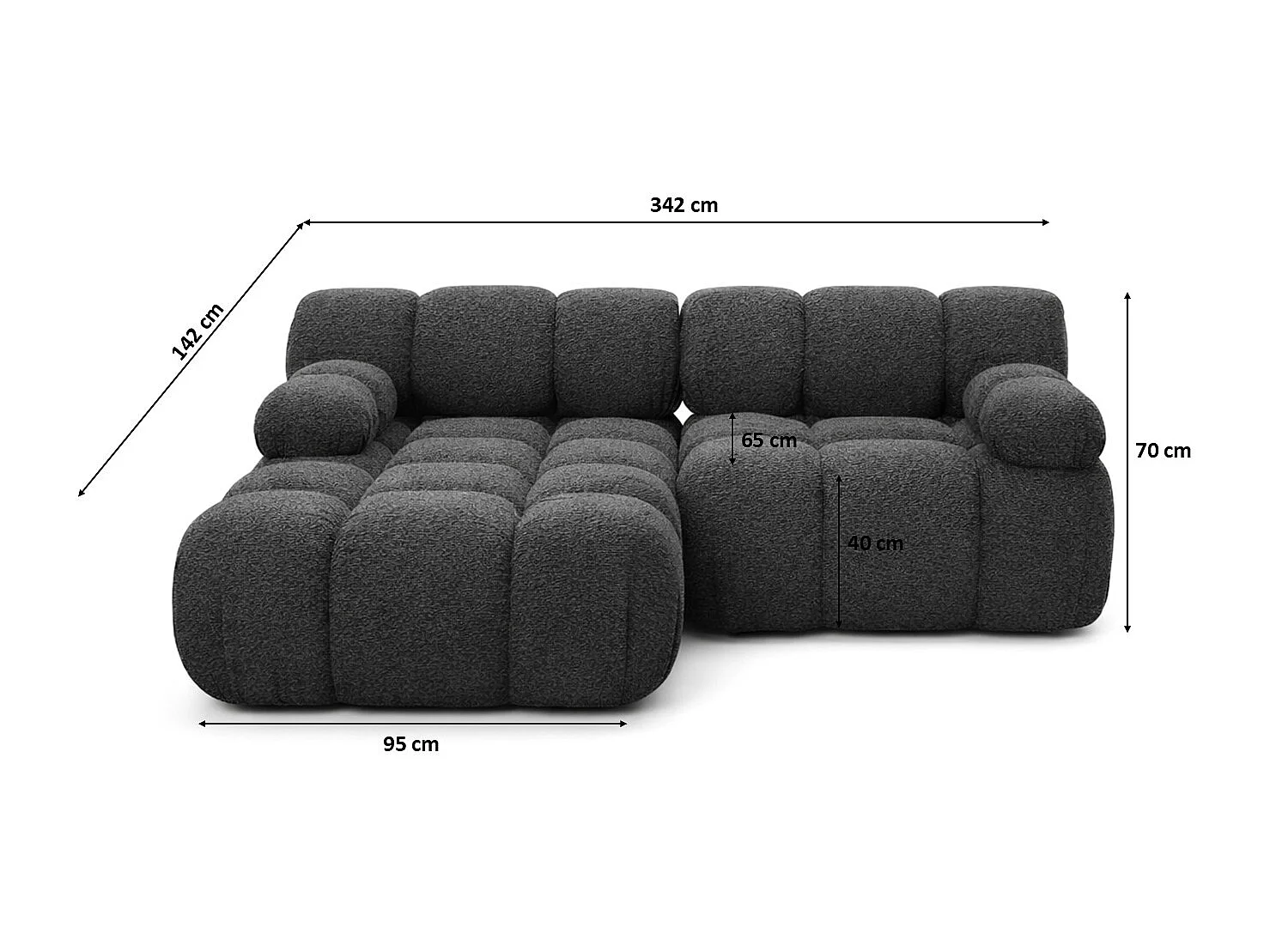 Divano angolare modulare a L Mini, tessuto bouclé Abriamo, Grafite, Sinistro, Selia