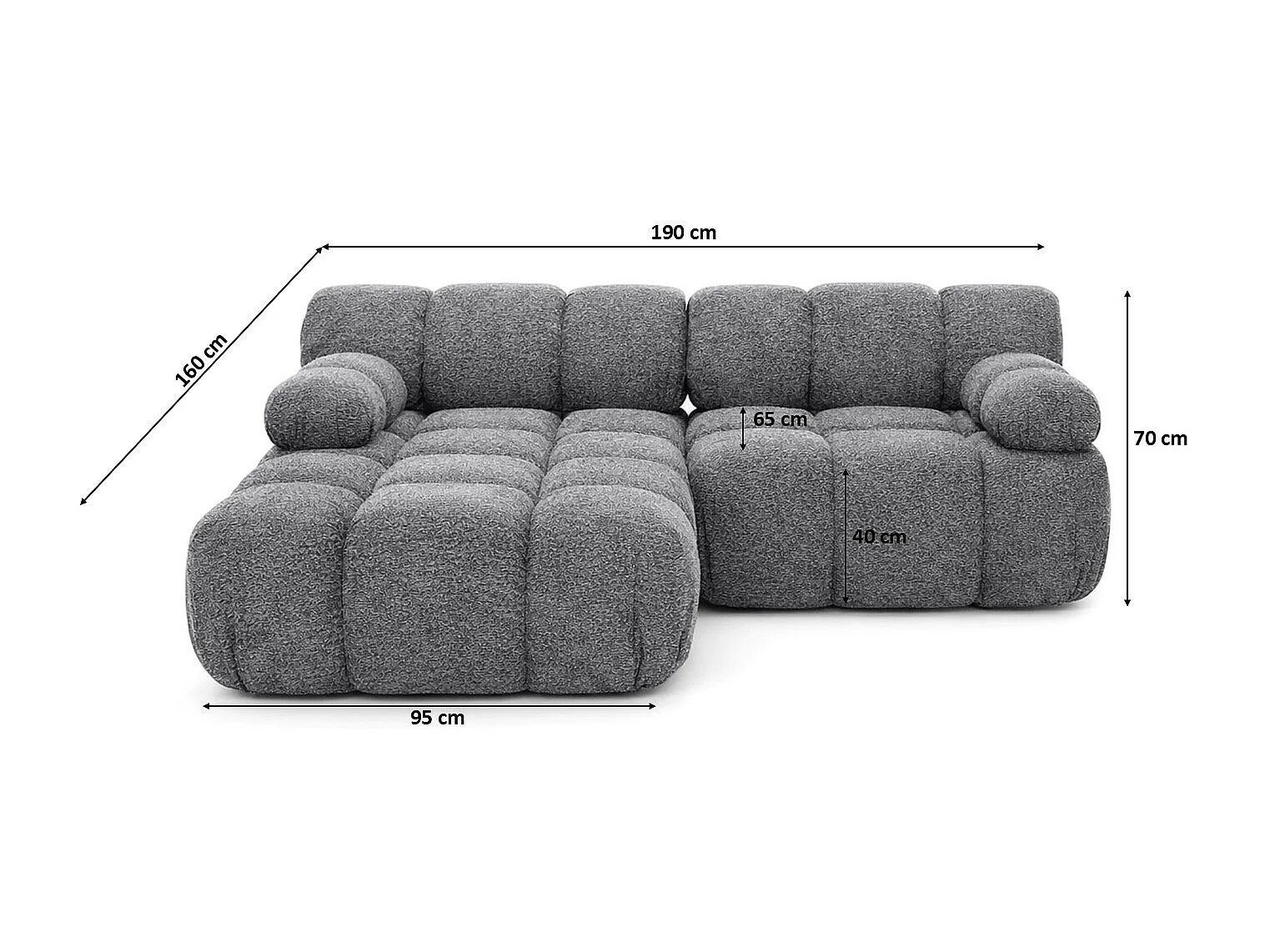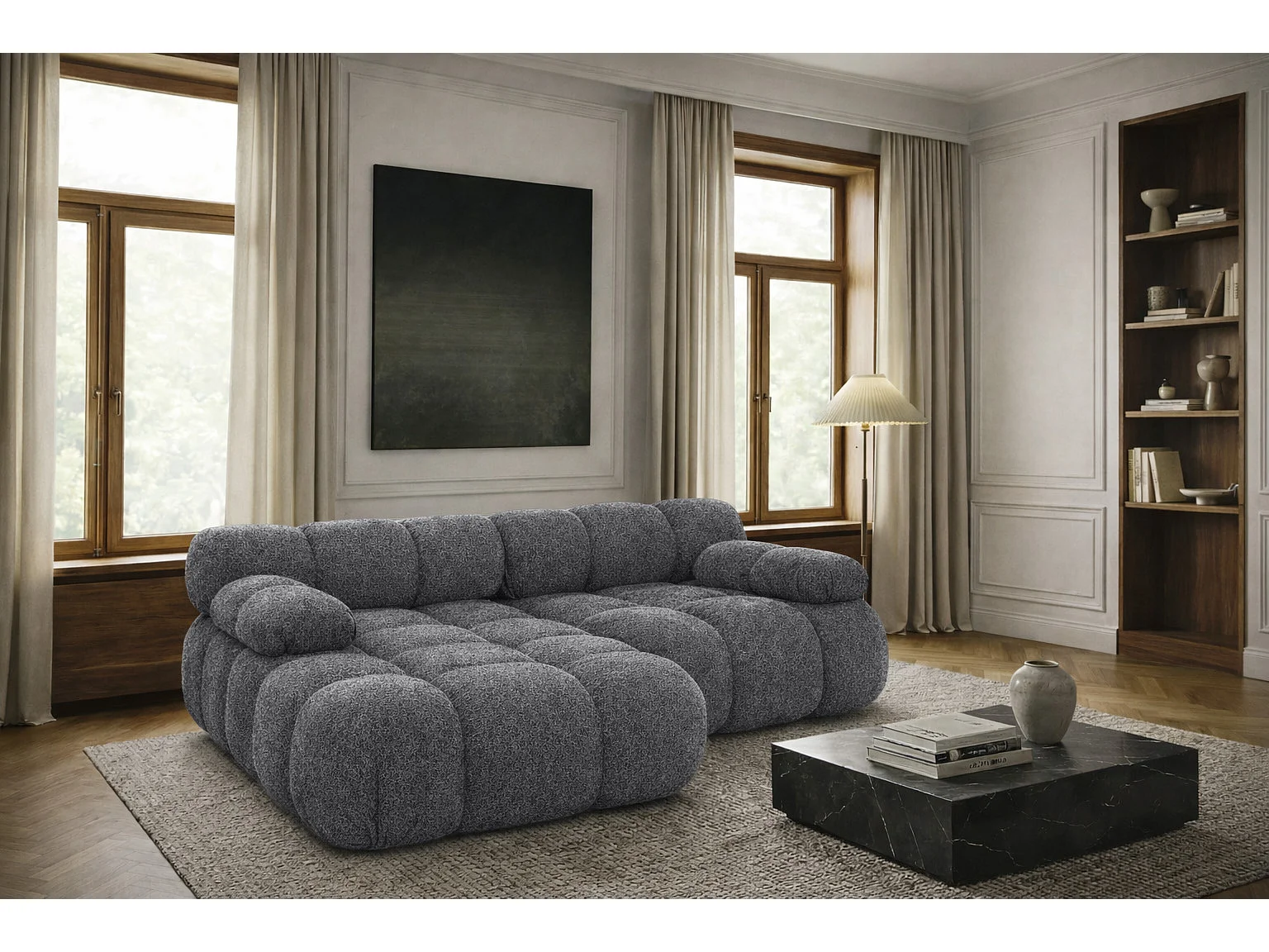 Divano angolare modulare a L Mini, tessuto bouclé Abriamo, Grigio scuro, Sinistro, Selia