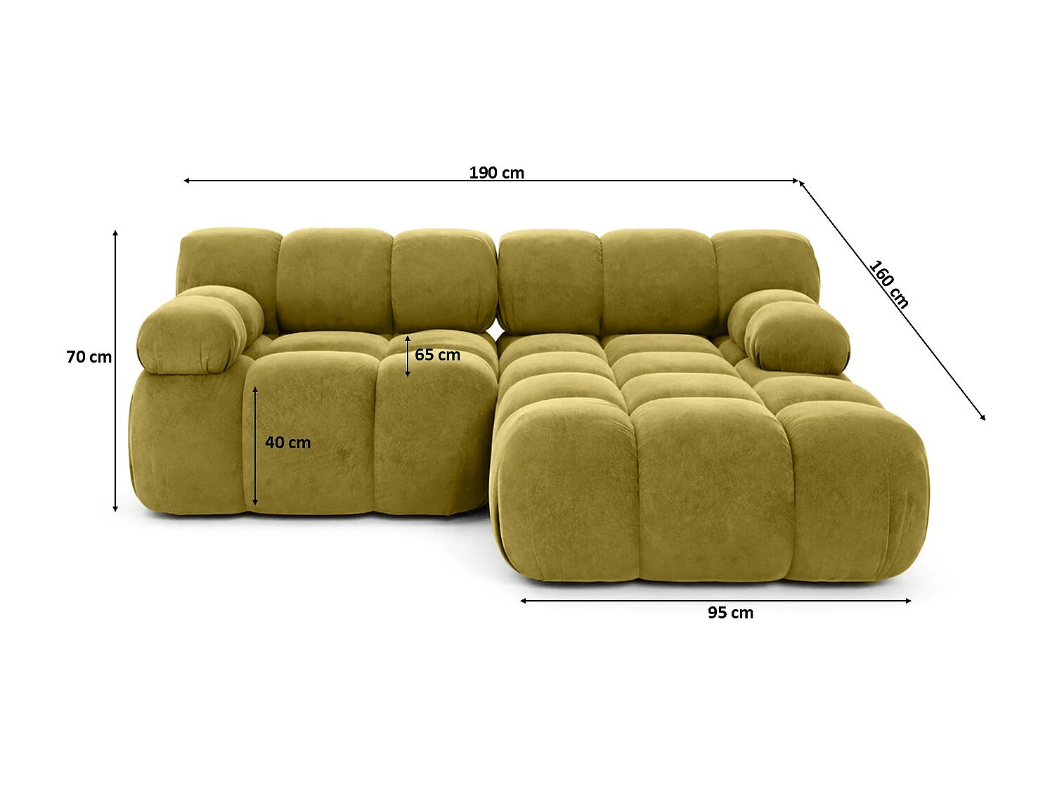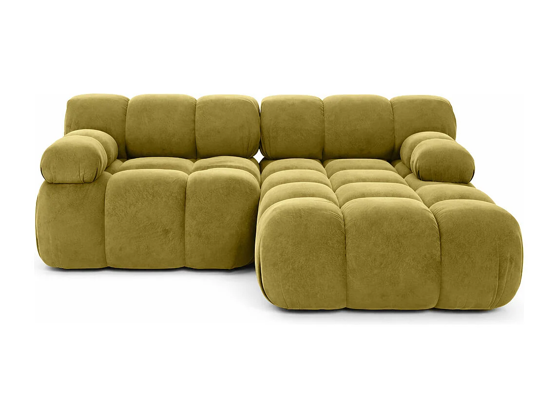 Divano angolare modulare a L Mini, velluto Salvador, Oliva, Destro, Selia