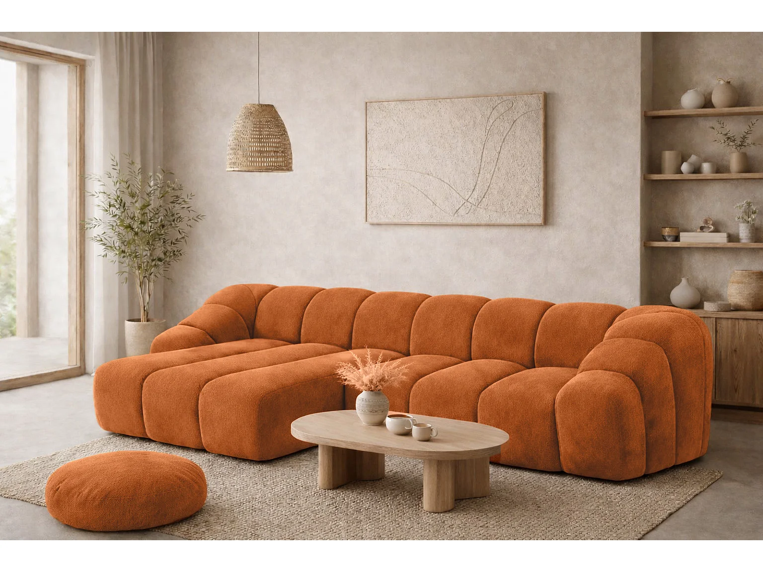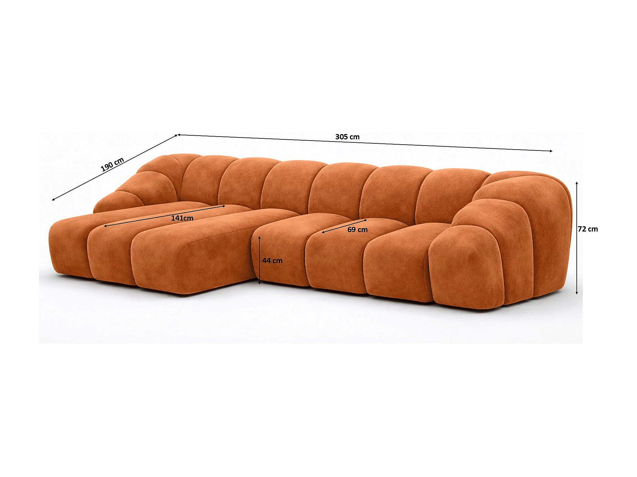 Divano angolare modulare a L, tessuto velluto Bluvel, color cannella, sinistra, CROISSANT L