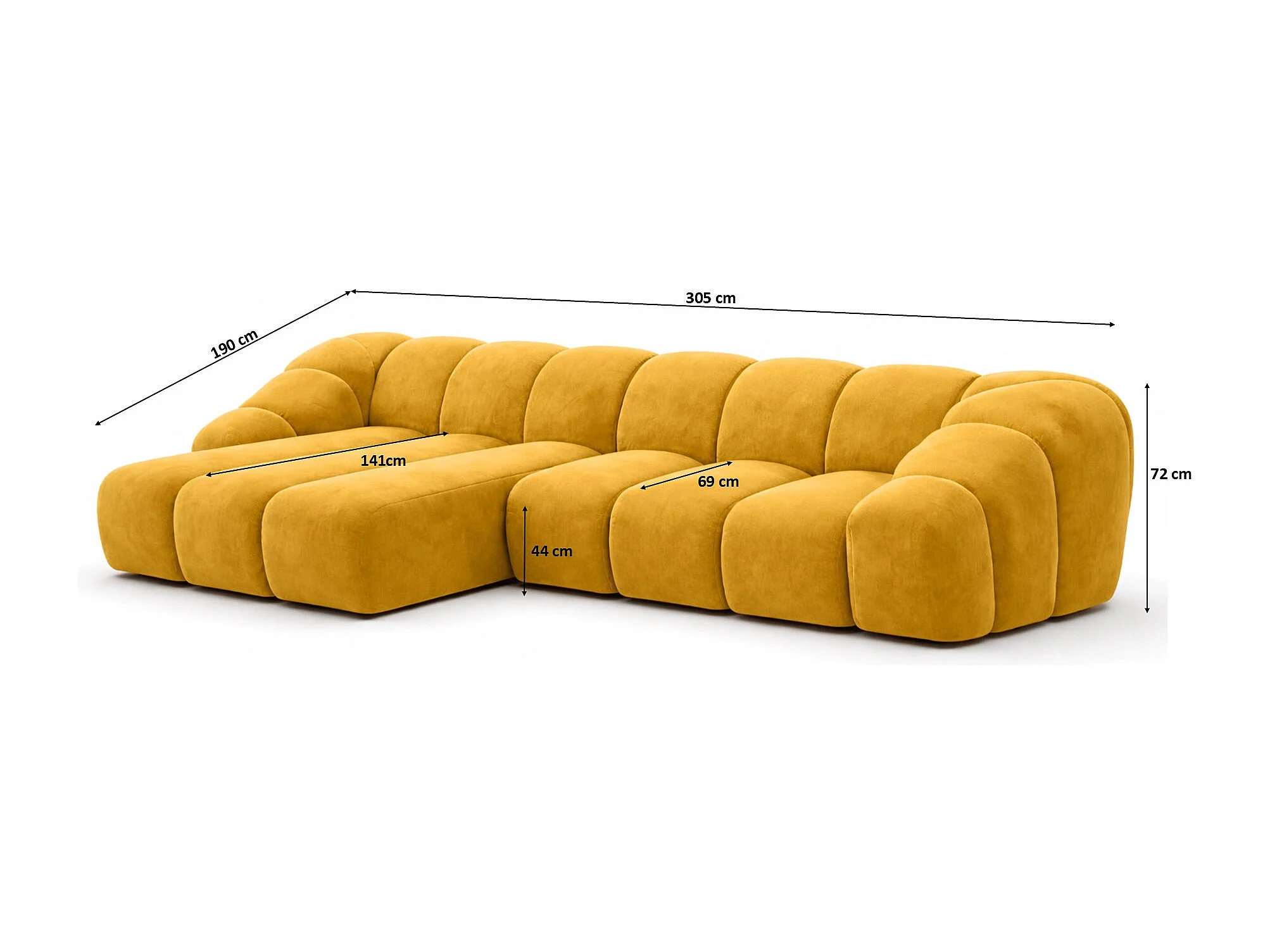 Divano angolare modulare a L, tessuto velluto Bluvel, dorato, sinistra, CROISSANT L