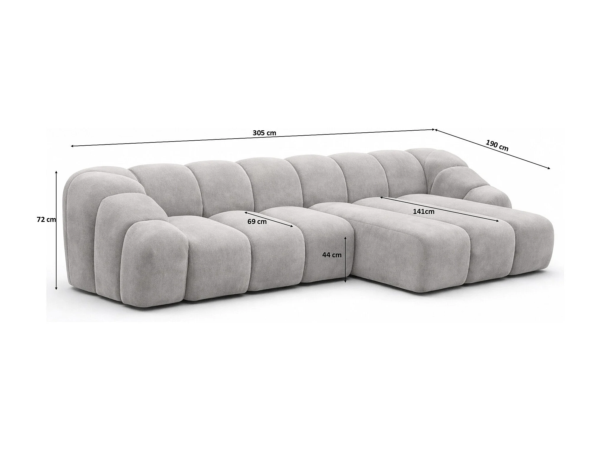 Divano angolare modulare a L, tessuto velluto Bluvel, grigio, destra, CROISSANT L