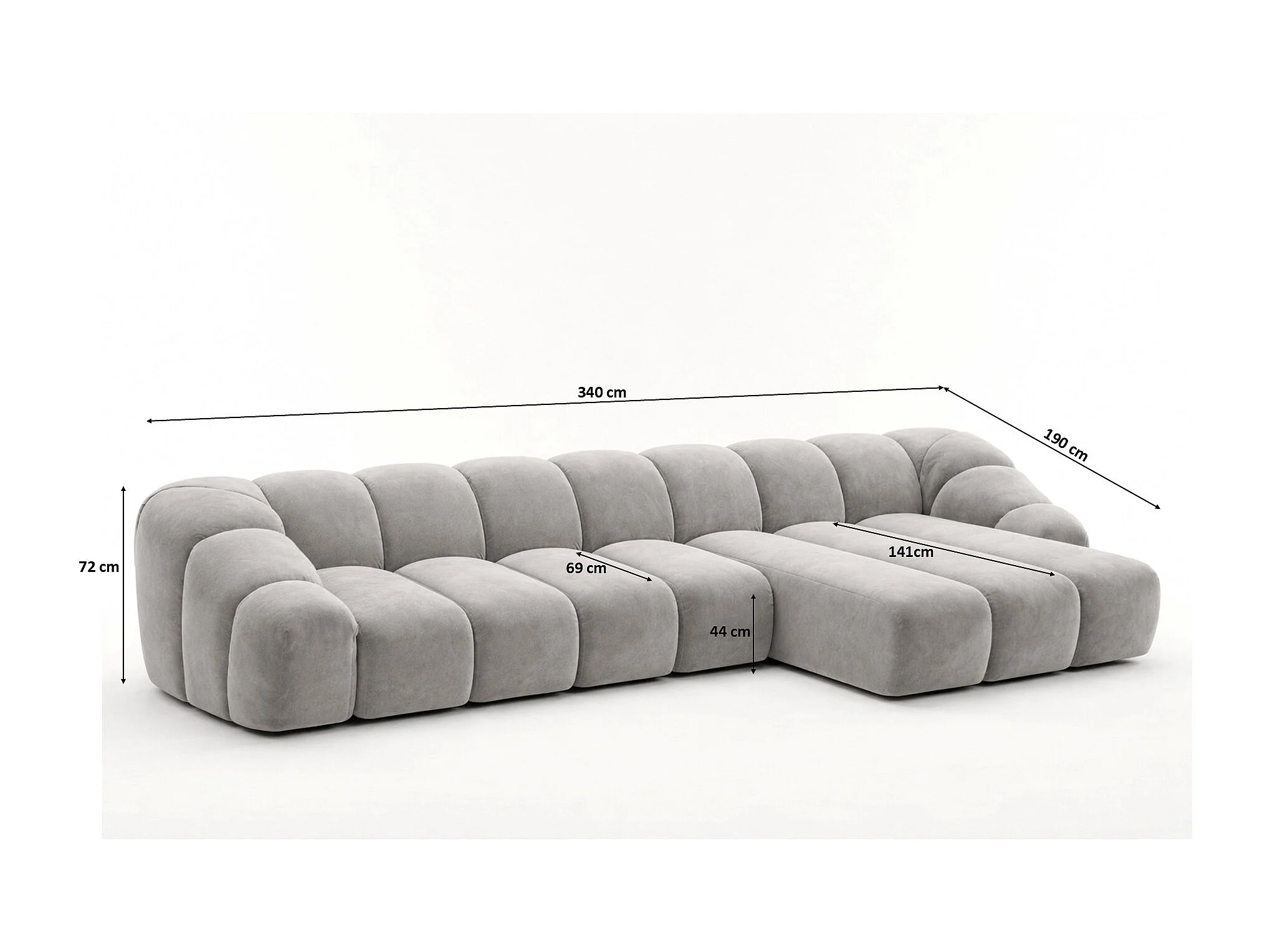 Divano angolare modulare a L, tessuto velluto Bluvel, grigio, destra, CROISSANT XL