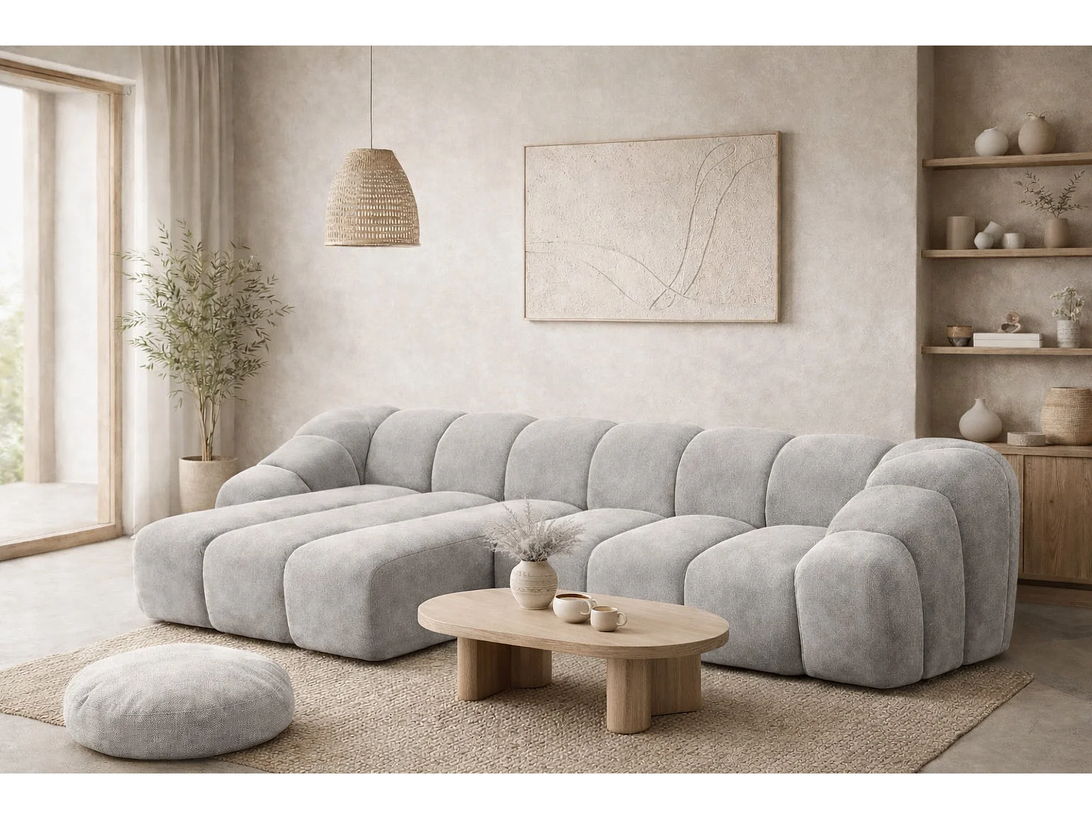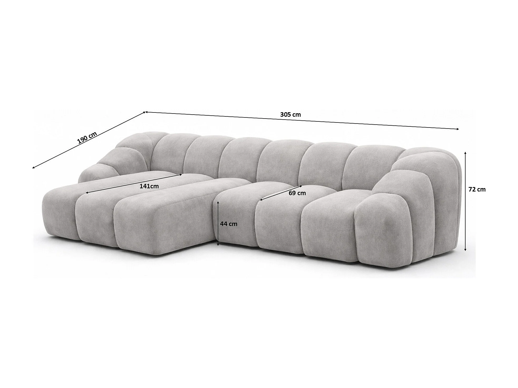 Divano angolare modulare a L, tessuto velluto Bluvel, grigio, sinistra, CROISSANT L