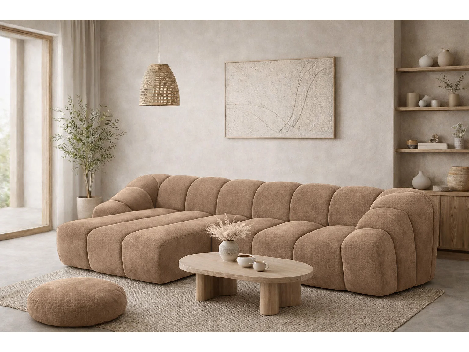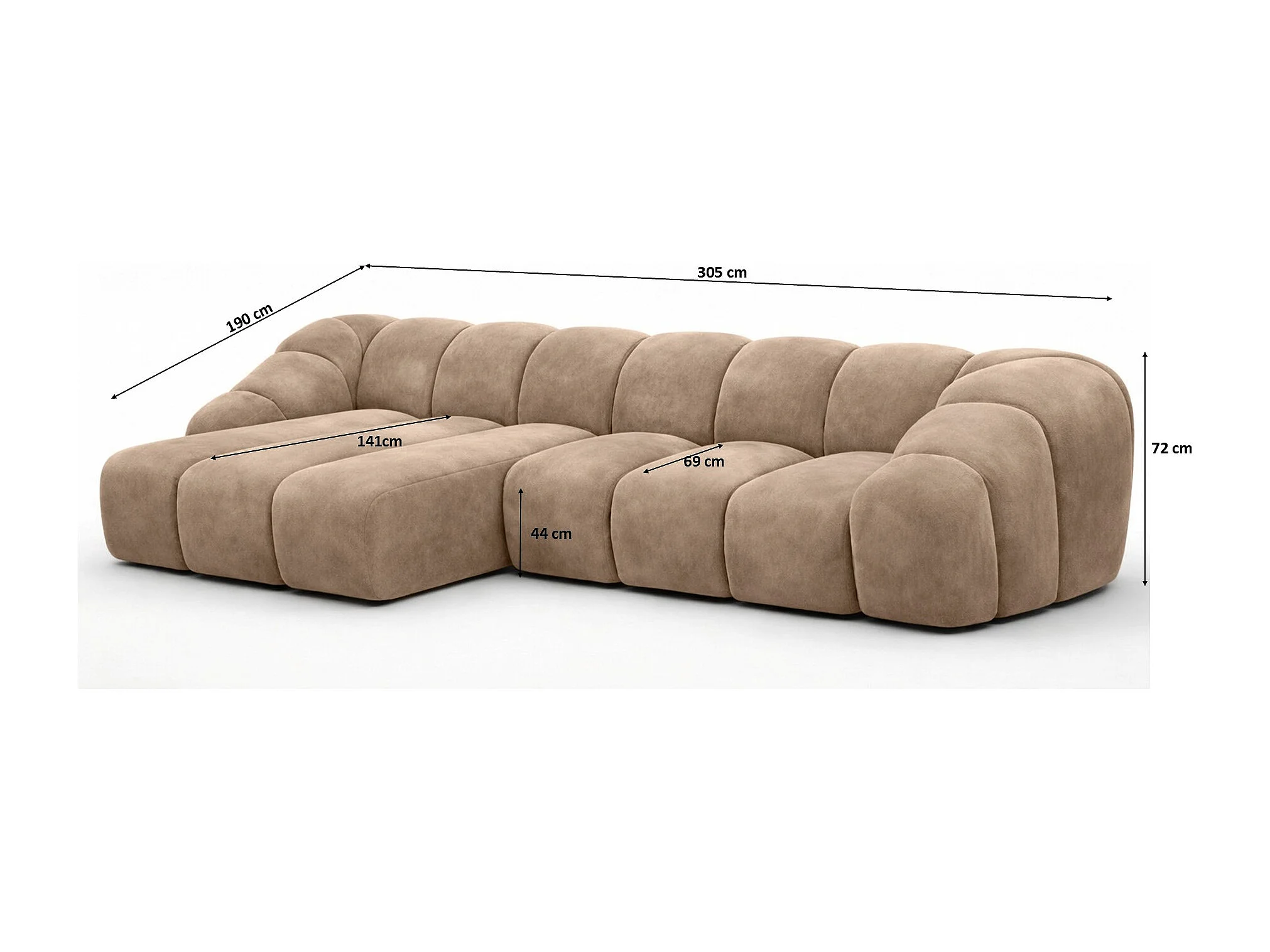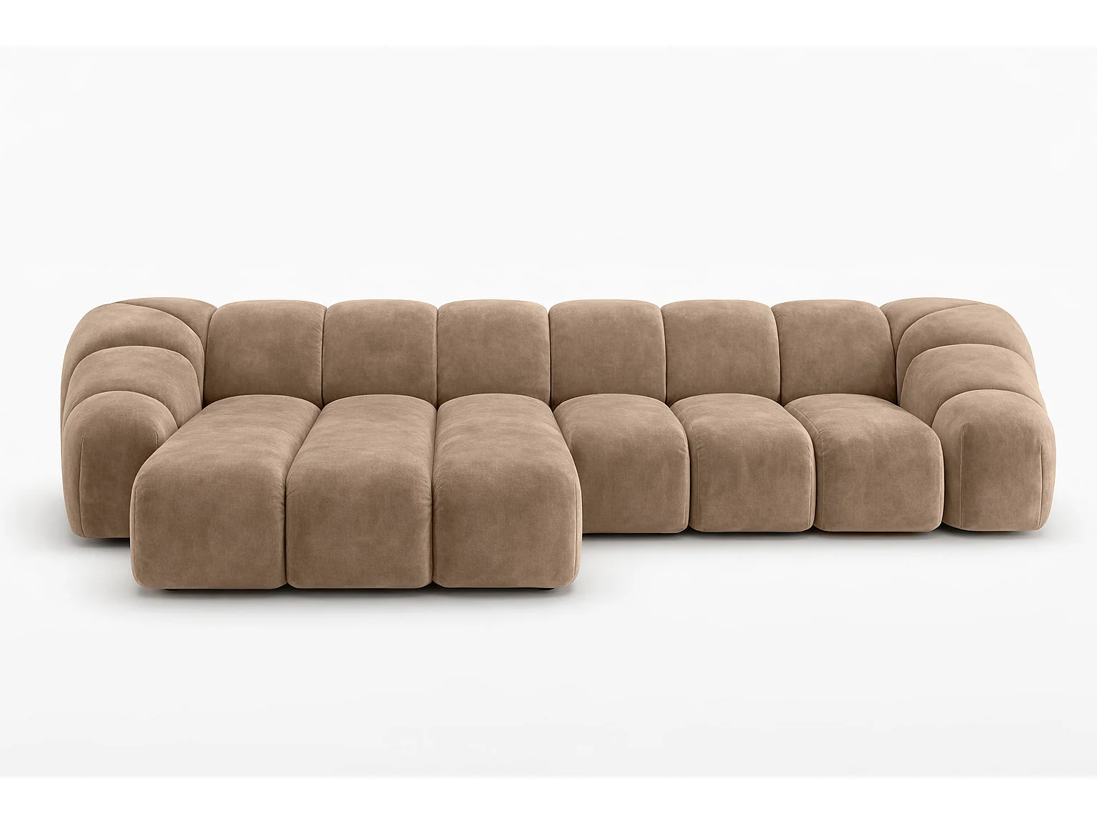 Divano angolare modulare a L, tessuto velluto Bluvel, latte, sinistra, CROISSANT L