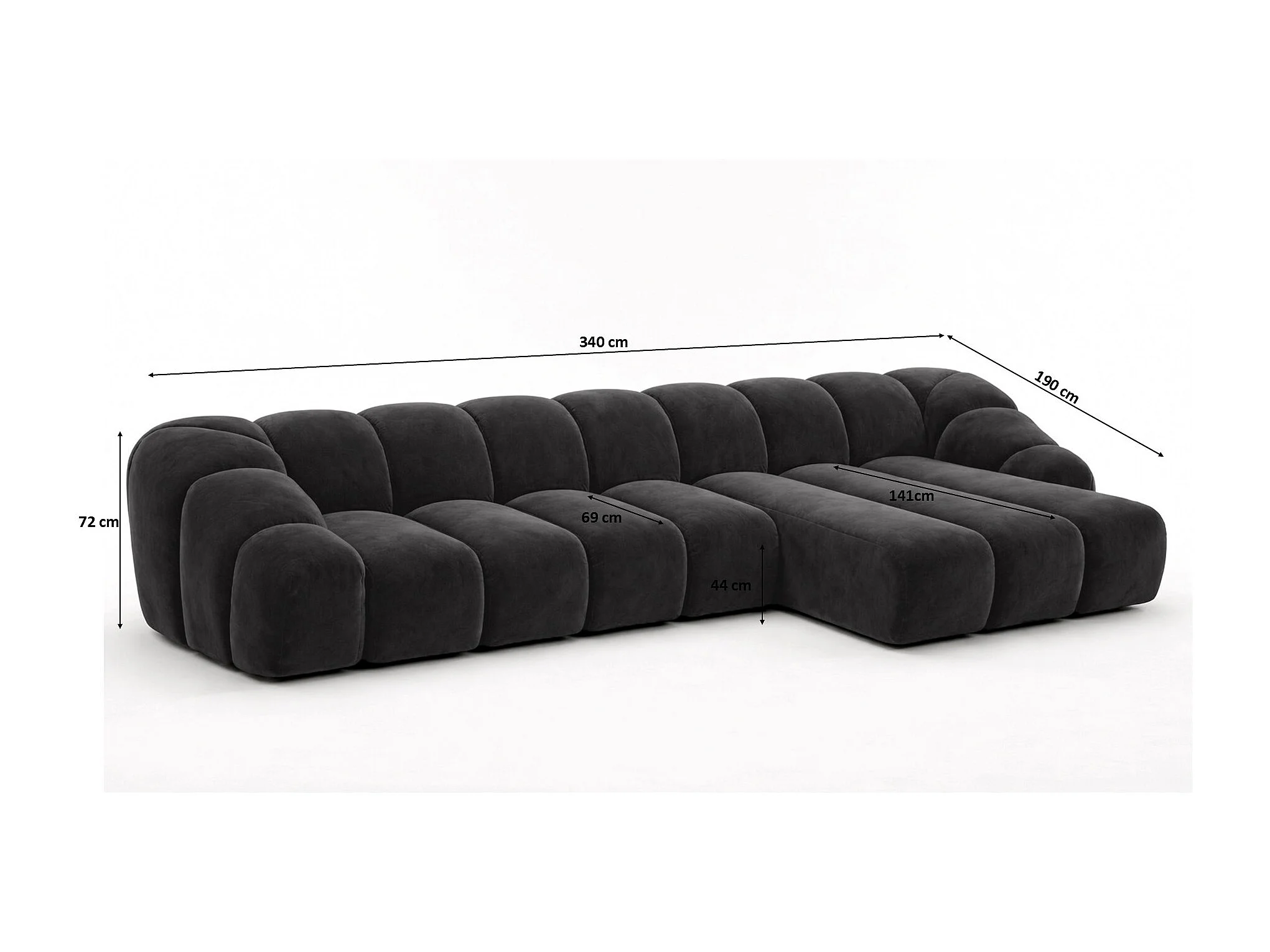 Divano angolare modulare a L, tessuto velluto Bluvel, nero, destra, CROISSANT XL