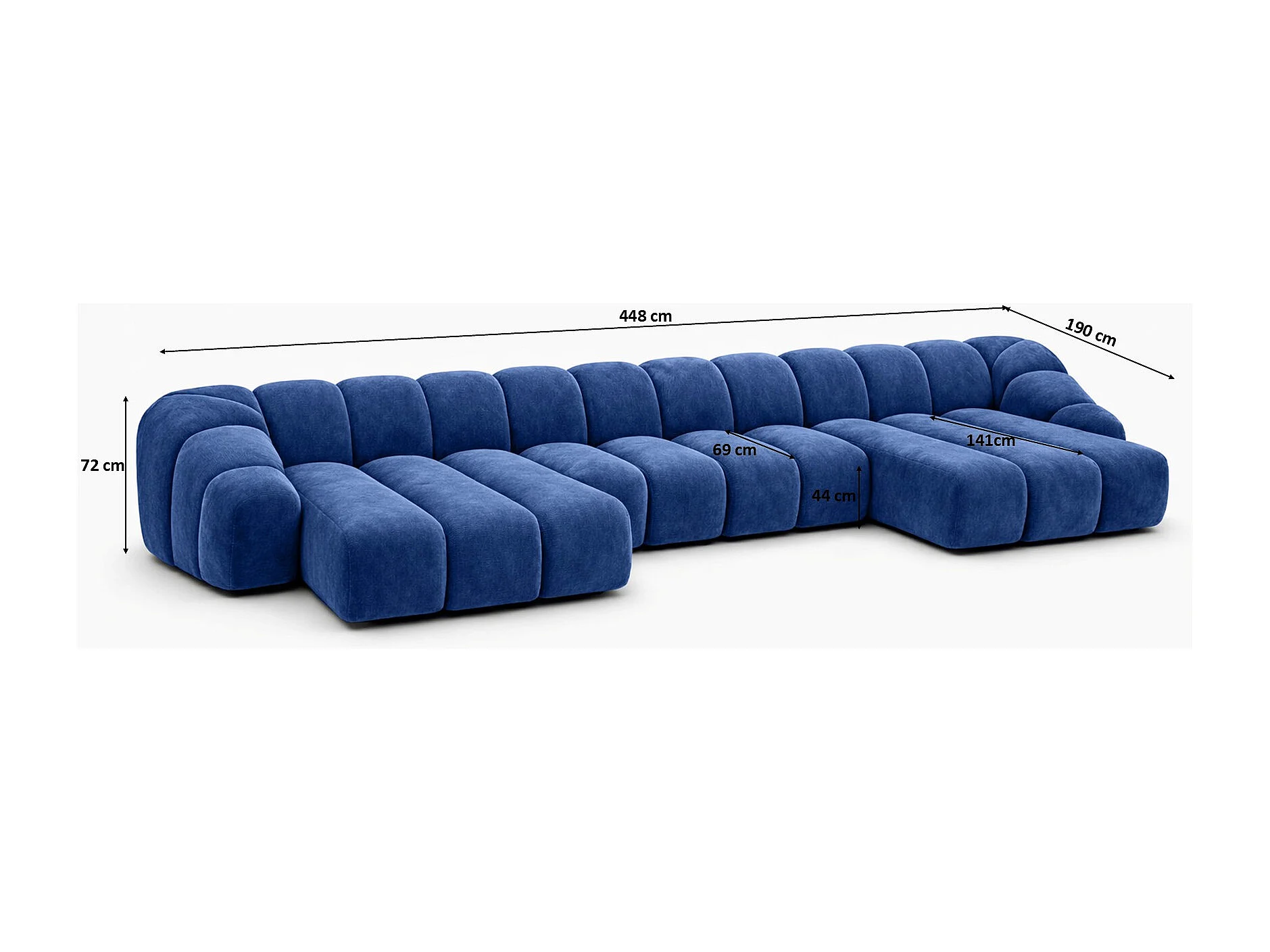 Divano angolare modulare a U, tessuto velluto Bluvel, blu inchiostro, CROISSANT U XL