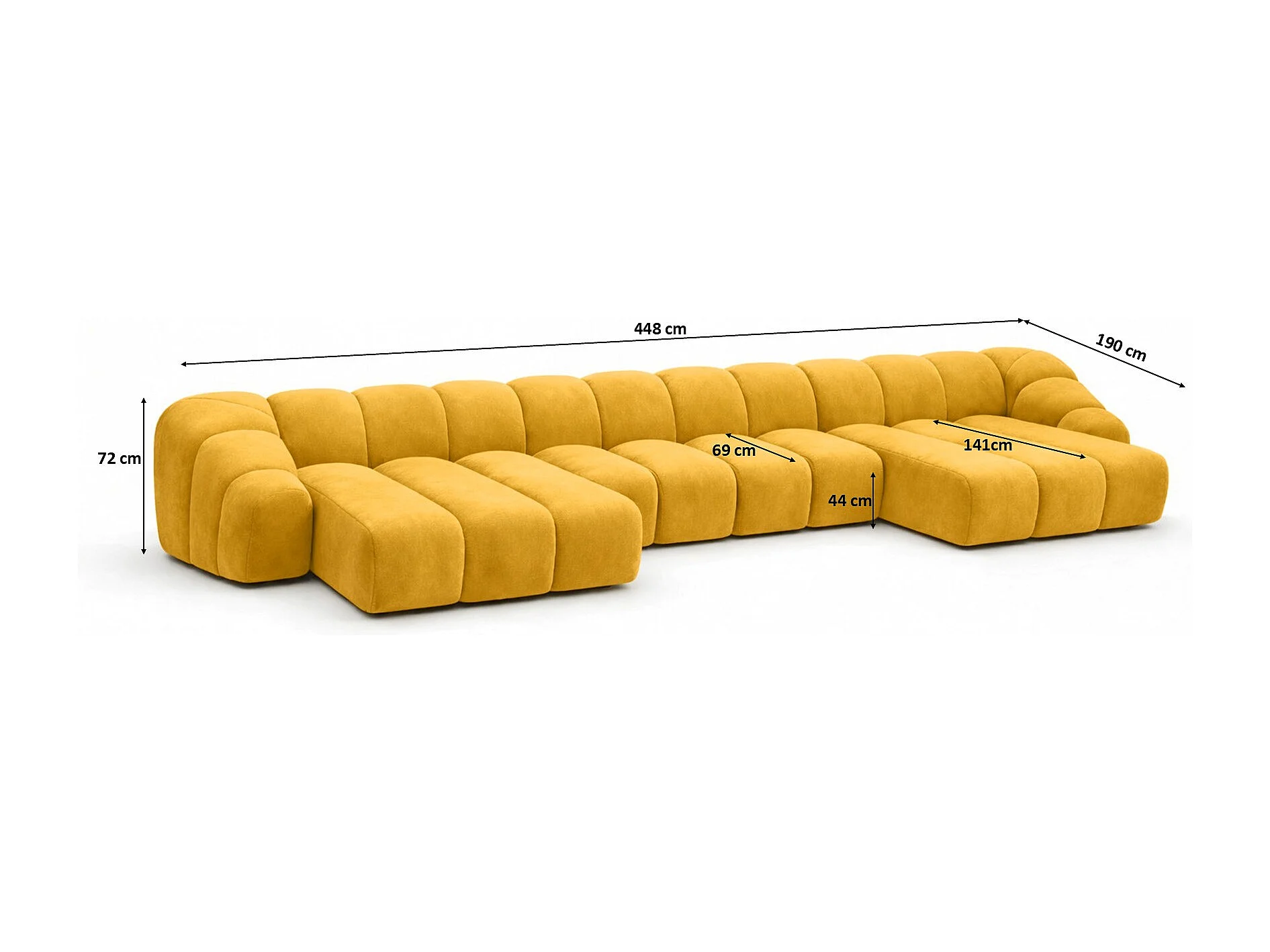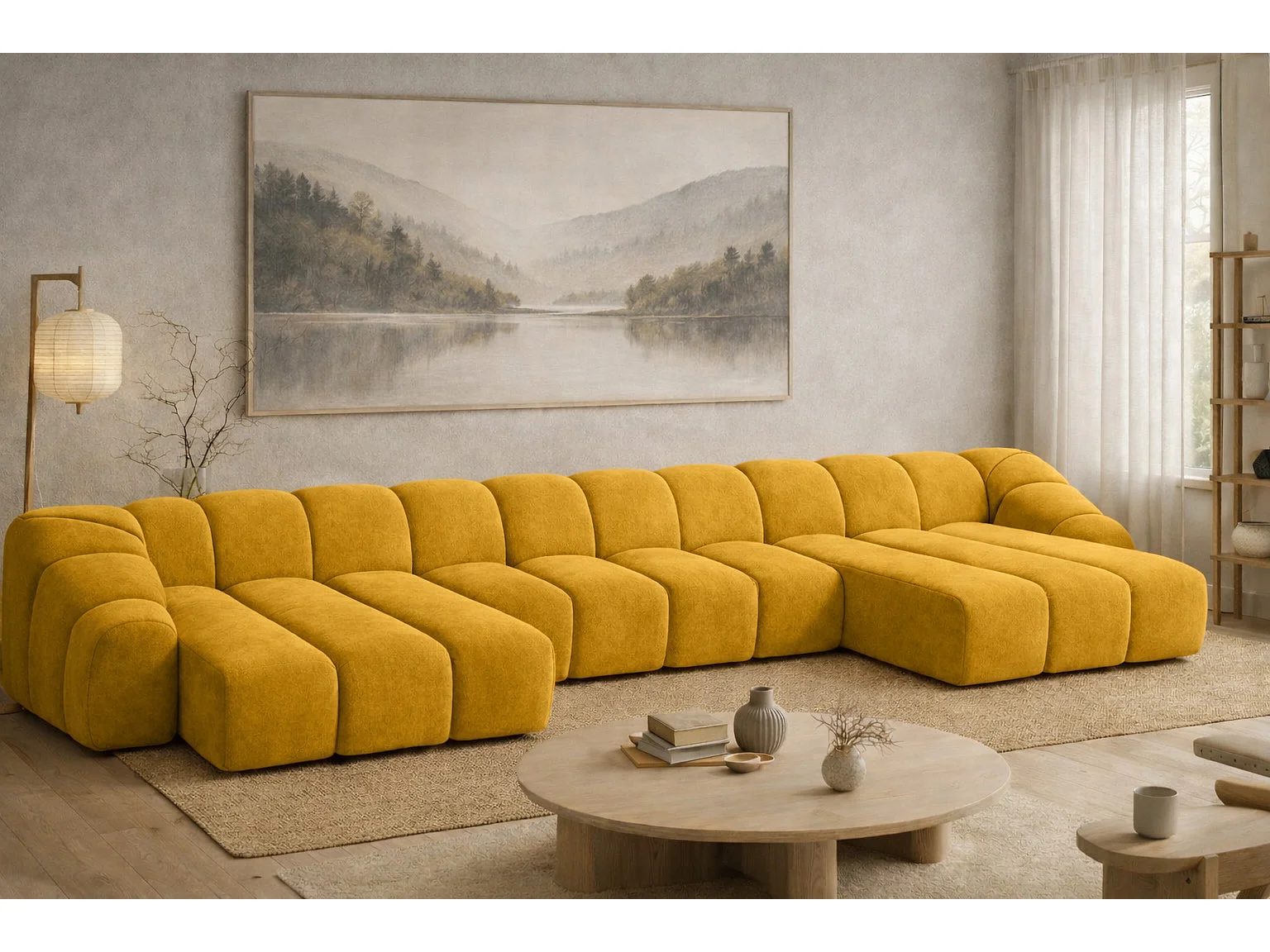 Divano angolare modulare a U, tessuto velluto Bluvel, dorato, CROISSANT U XL