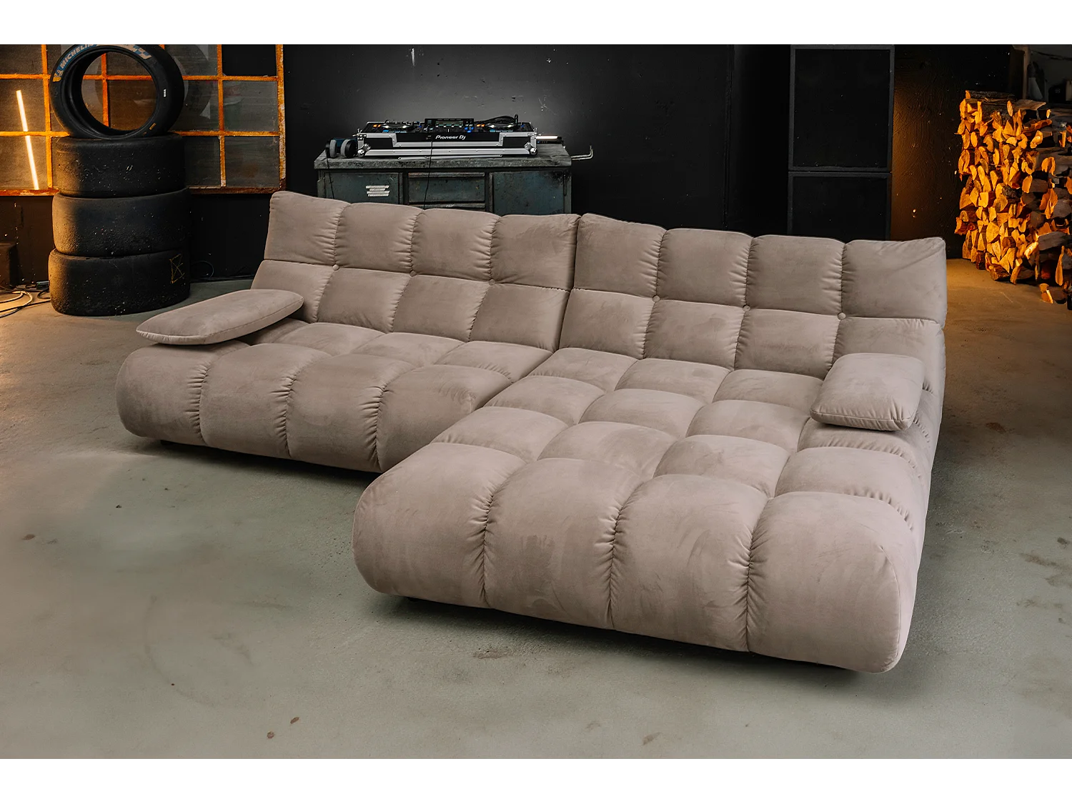 Divano angolare 3 posti con chaise longue - 166 x 118 x 77 cm - tessuto in velluto - gambe in plastica - marrone chiaro