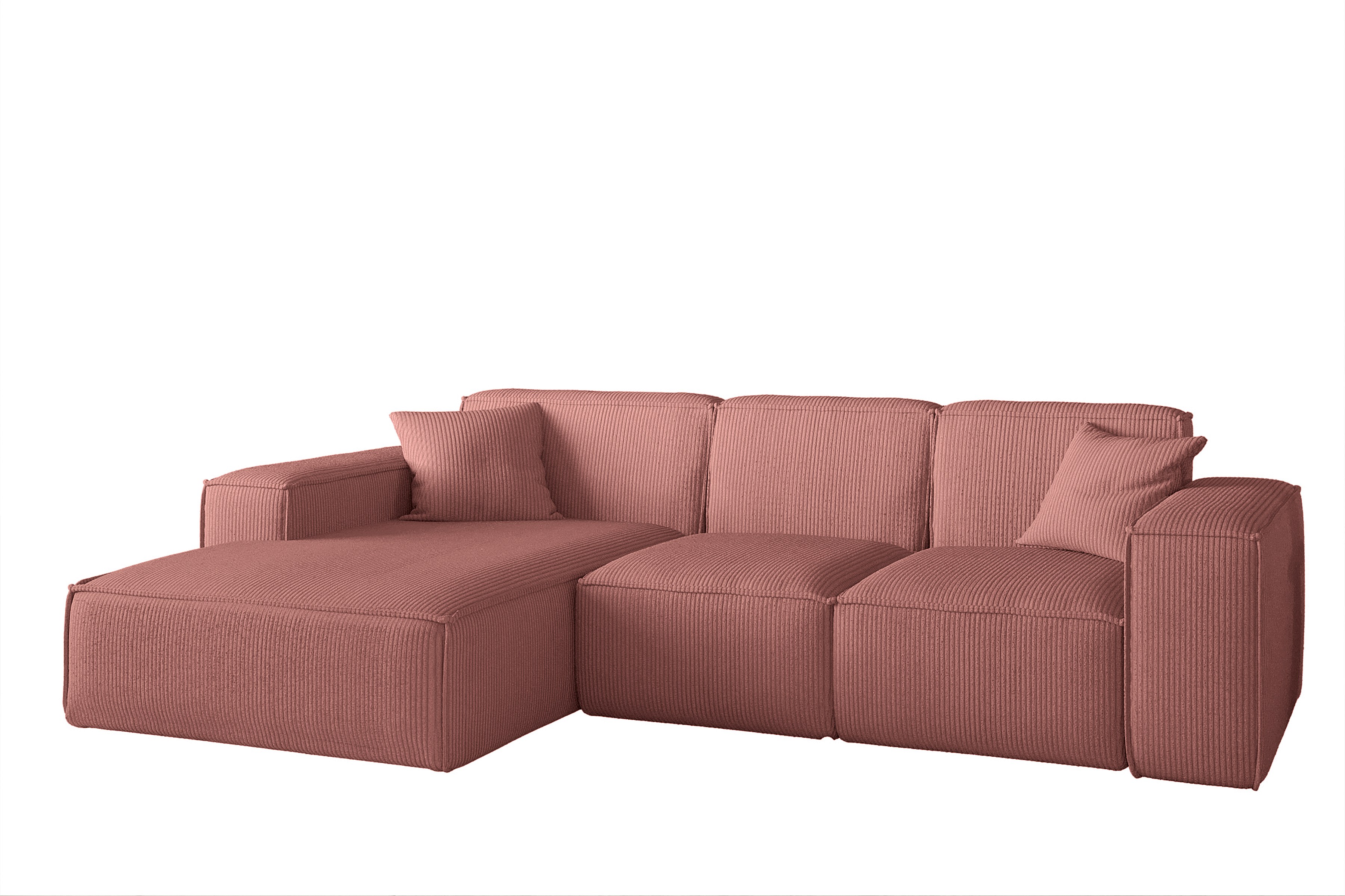 Divano angolare PULA a L, tessuto Scala, salmone, sinistro