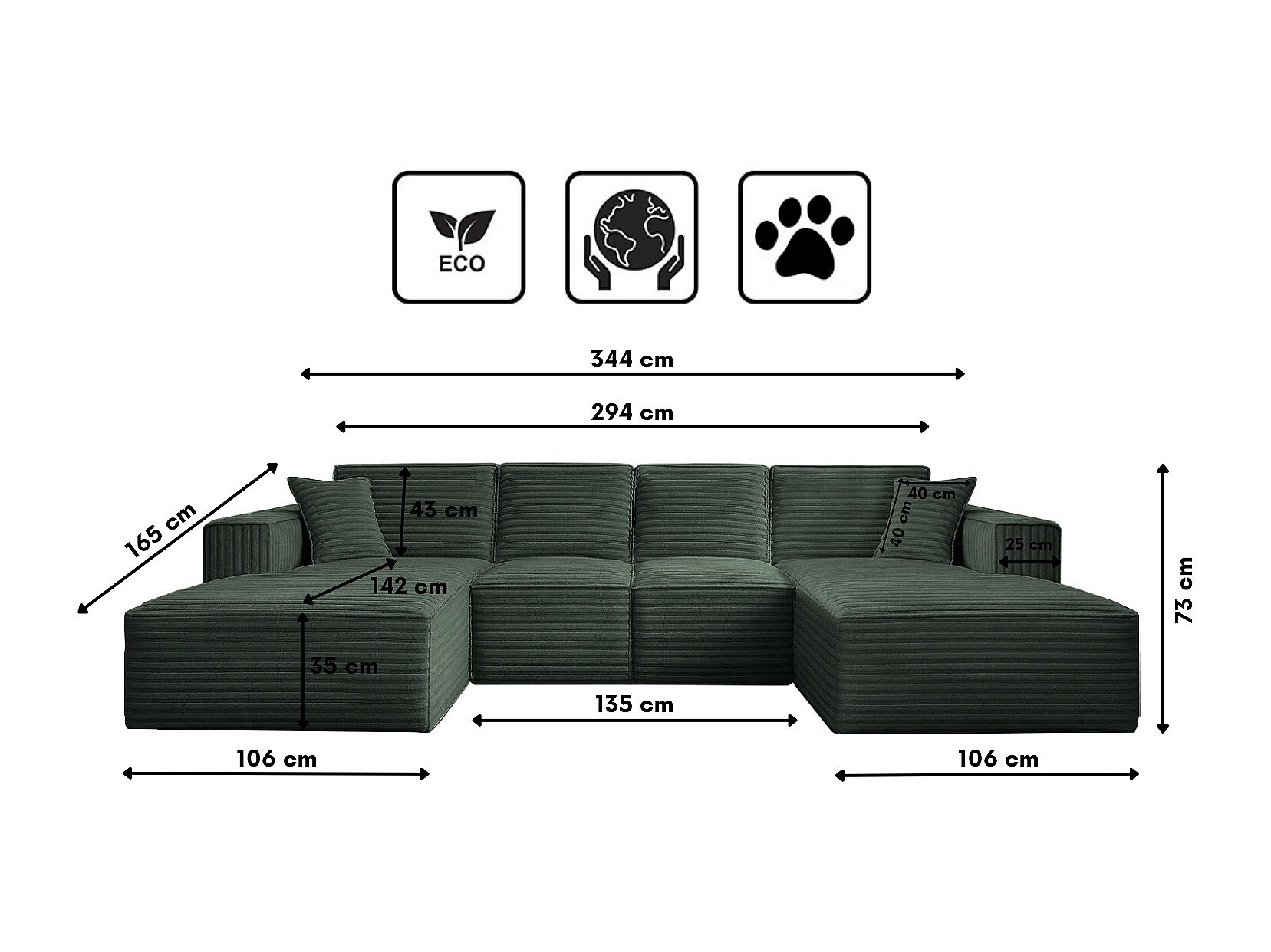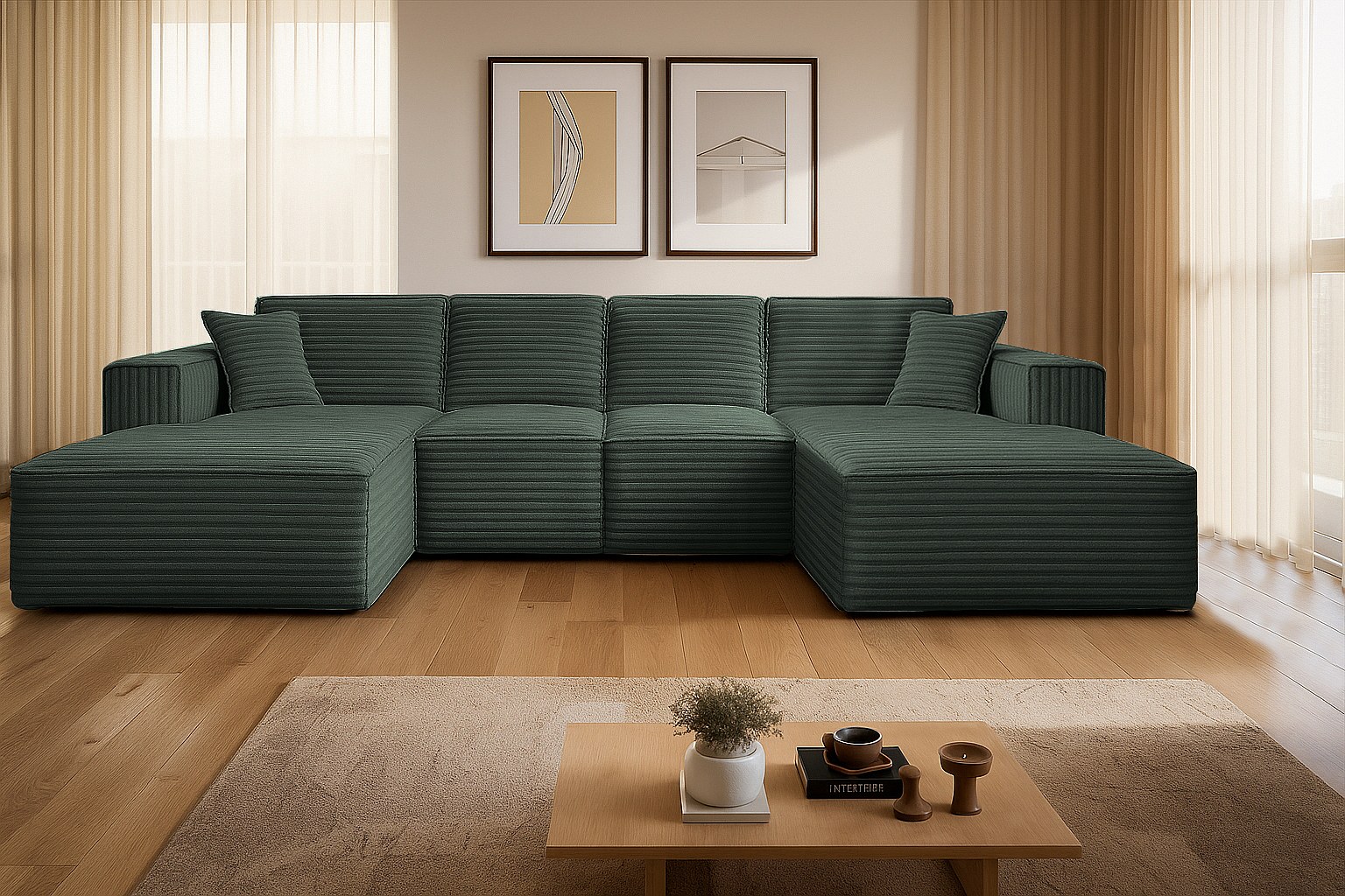 Divano angolare Siena a U con tessuto Velo Green