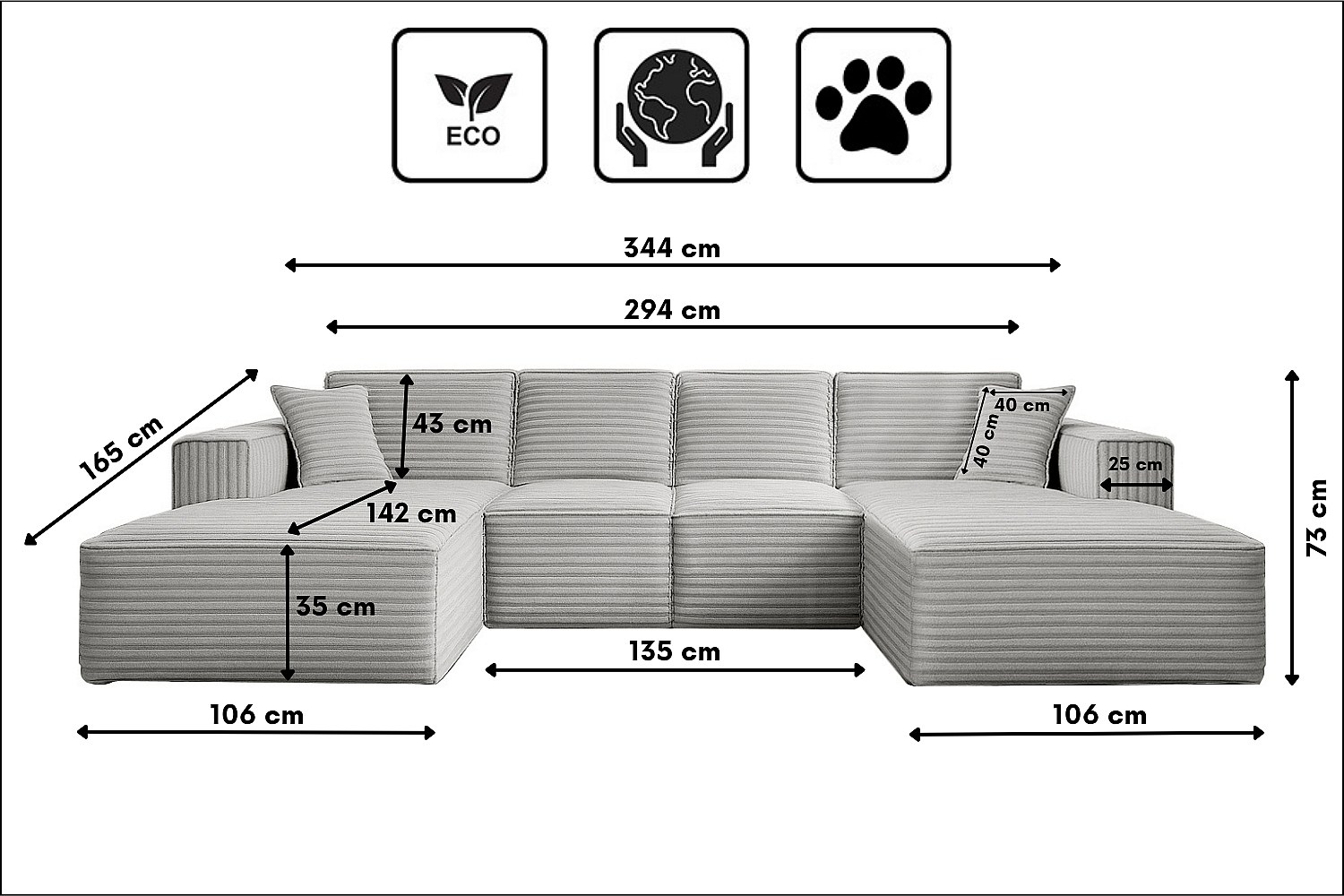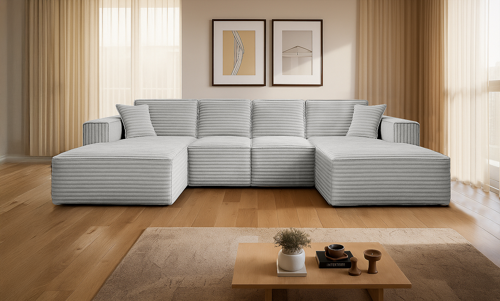 Divano angolare Siena a U con tessuto Velo grigio chiaro