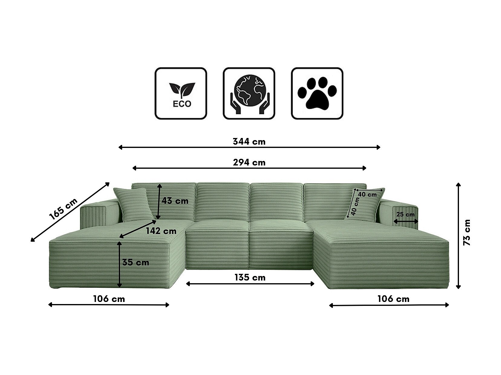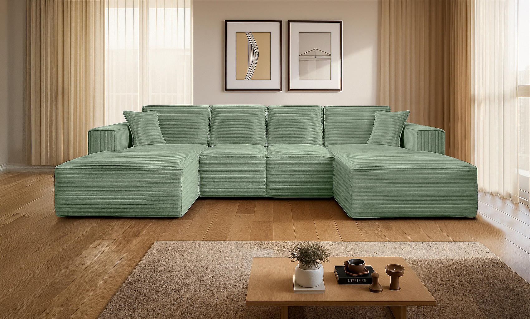 Divano angolare Siena a U con tessuto Velo Olive