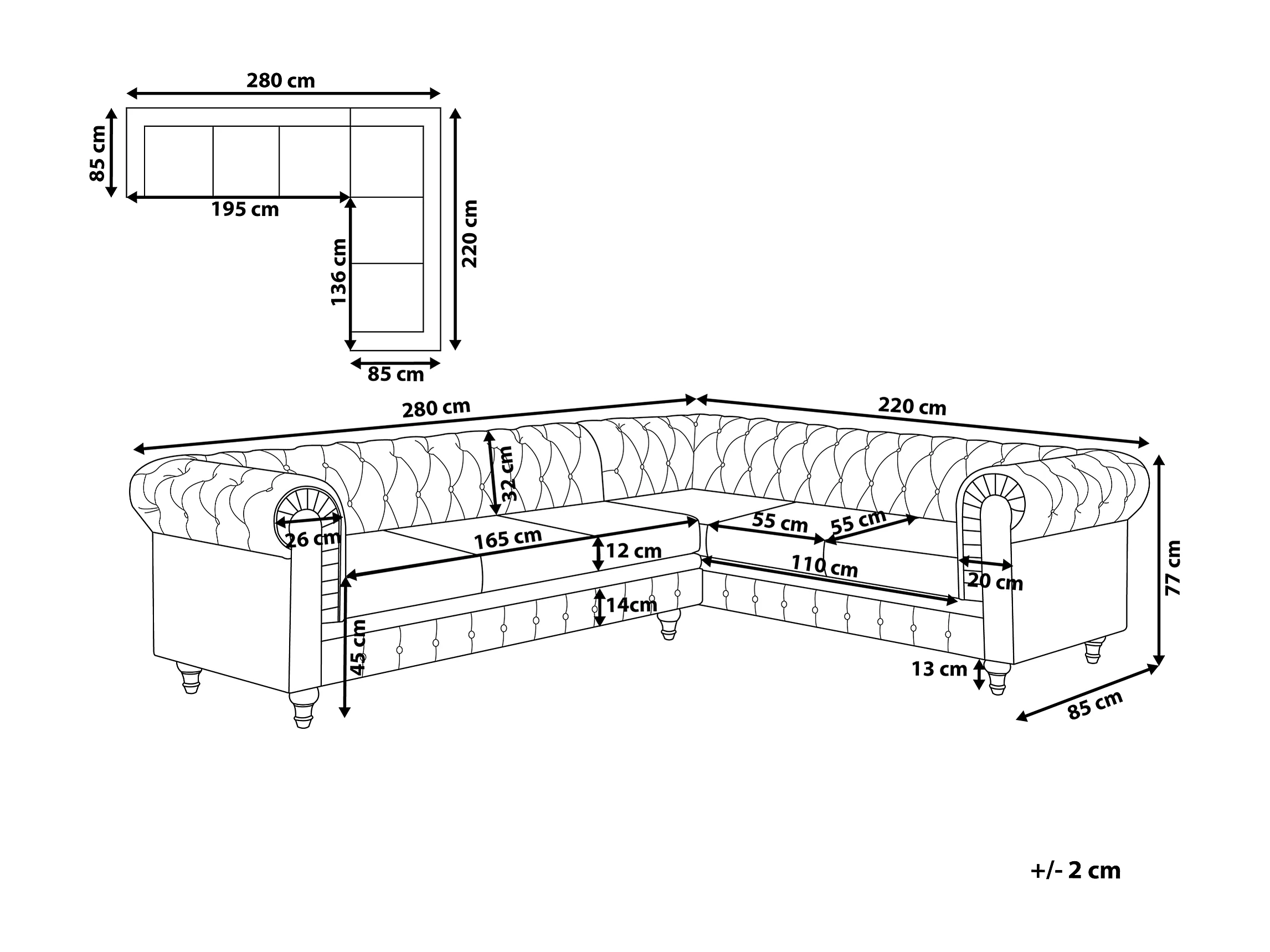 Divano angolare CHESTERFIELD Tessuto Grigio 6 posti Lato Sinistro