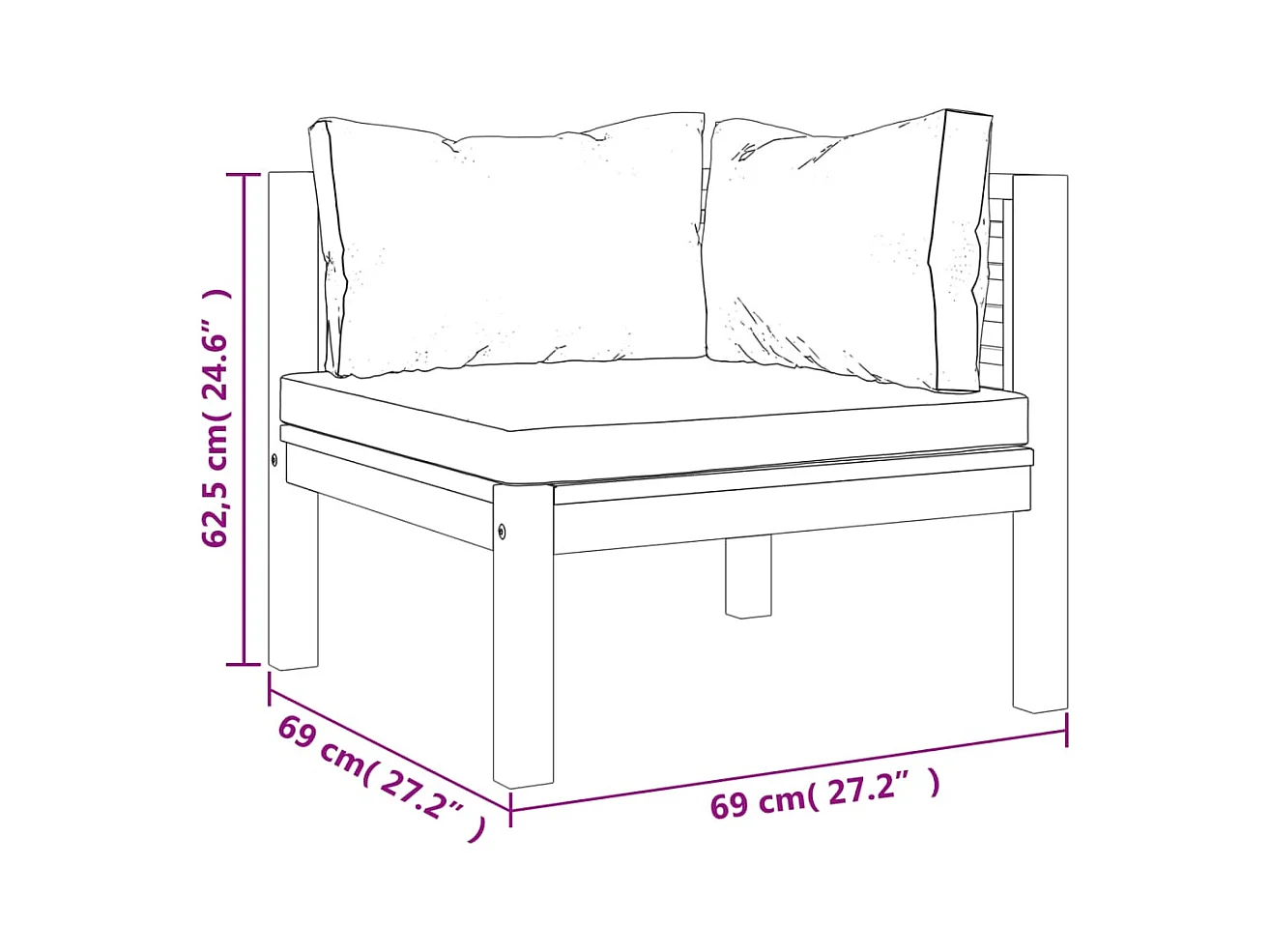 Divano a 2 Posti con Cuscini Grigio Scuro in Massello di Acacia