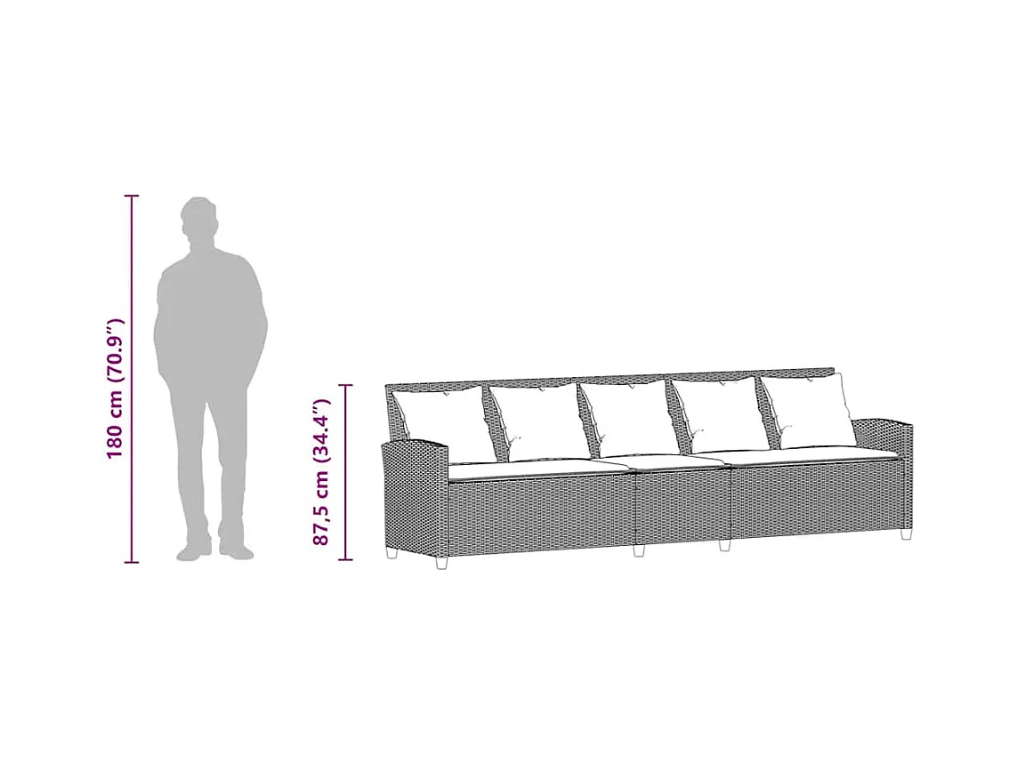 Divano da Giardino con Cuscini in Polyrattan Grigio
