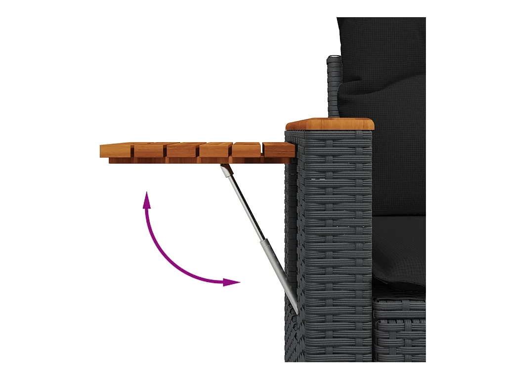 Divano da giardino con cuscini a 2 posti, resina intrecciata nera