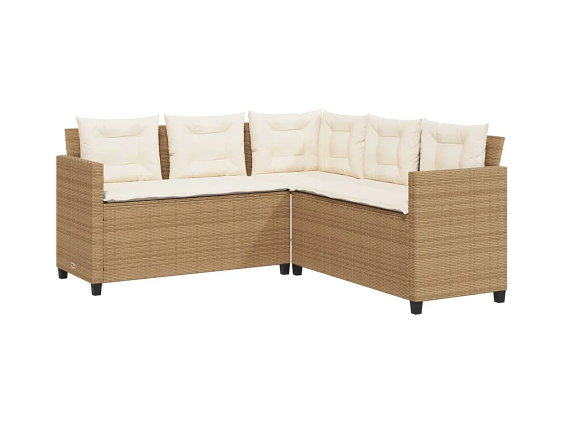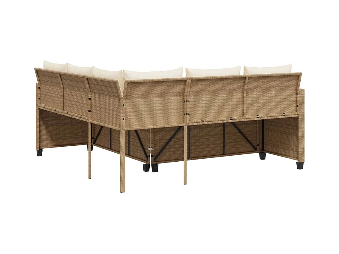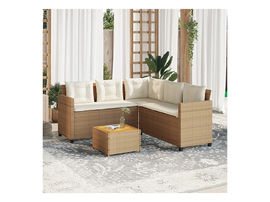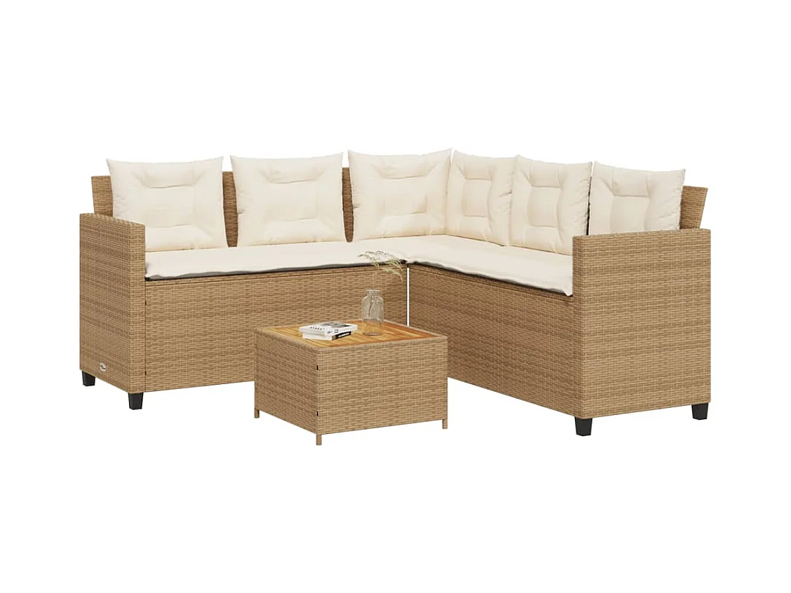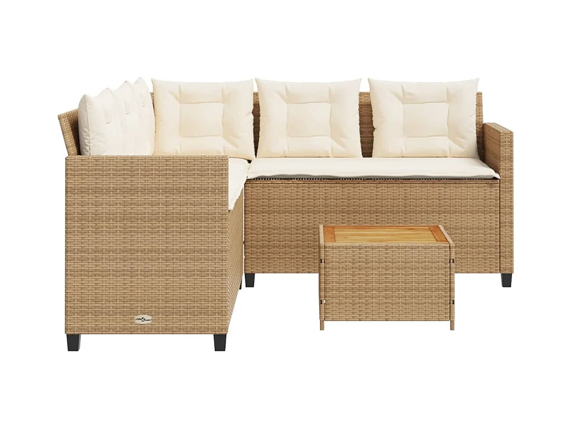 Divano da Giardino con Tavolo e Cuscini a L Beige in Polyrattan