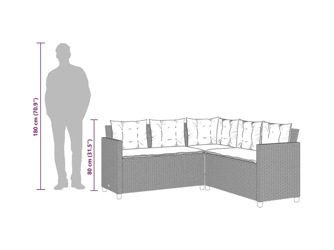 Divano da Giardino con Tavolo e Cuscini a L Grigio Polyrattan
