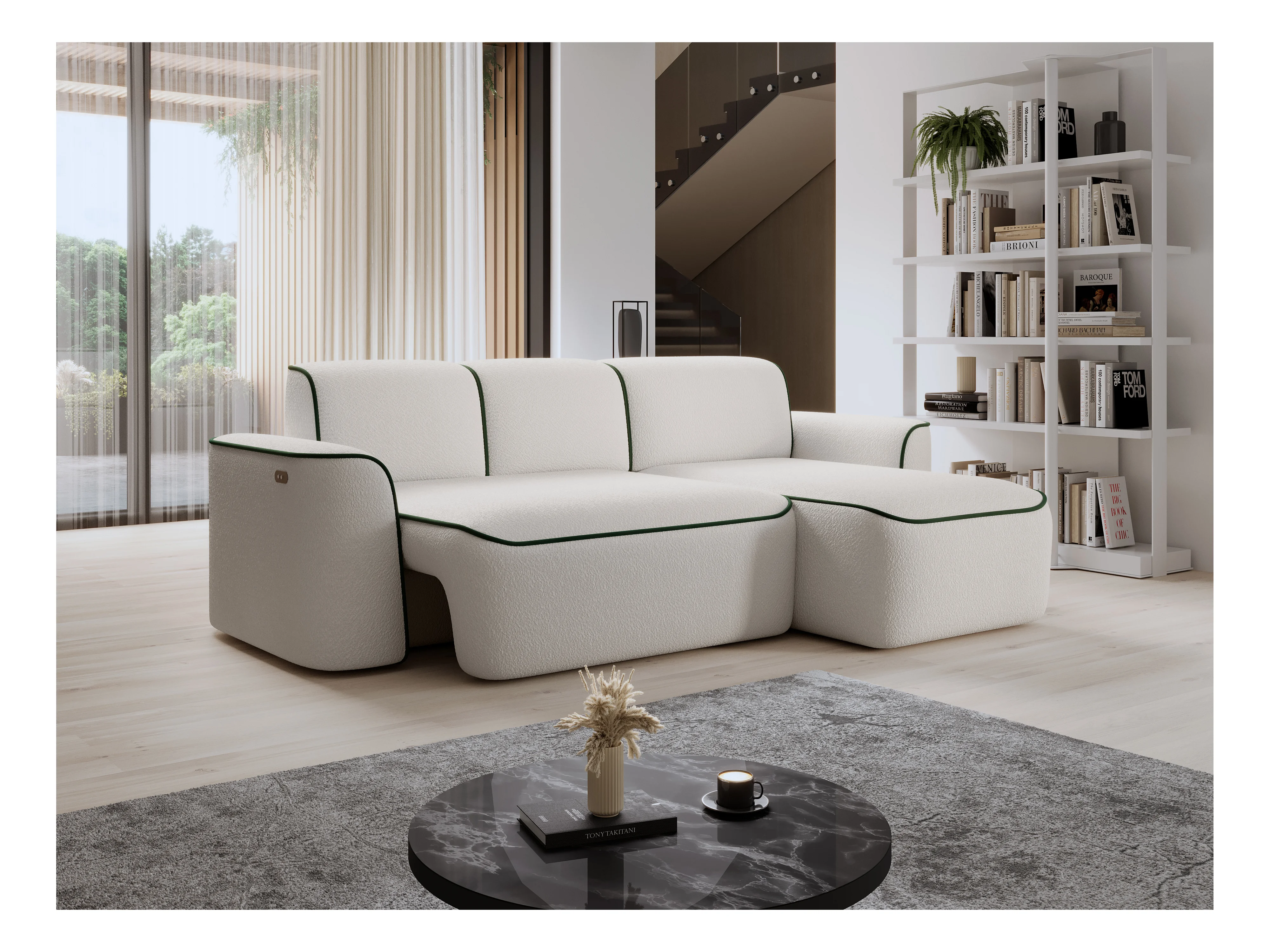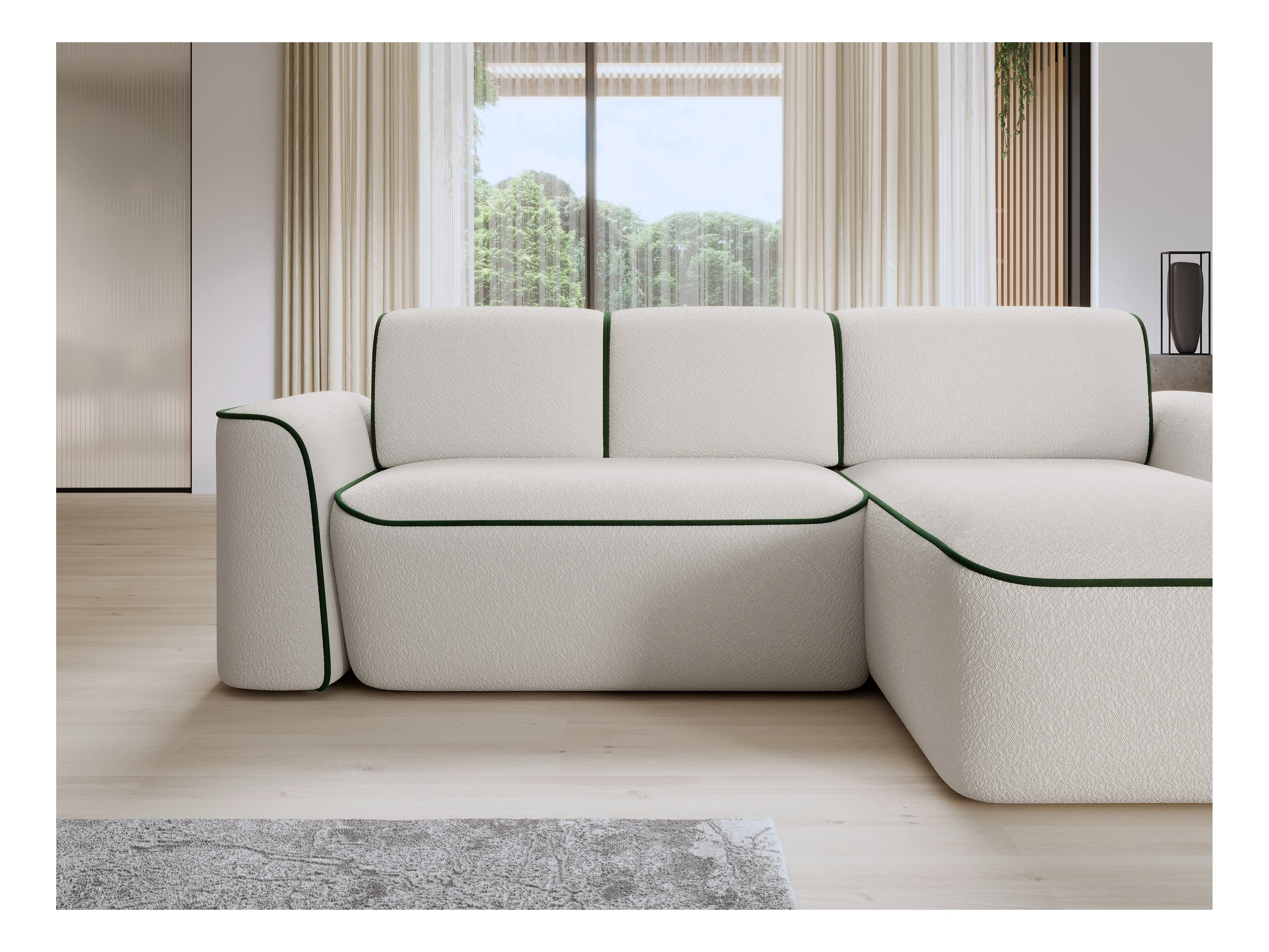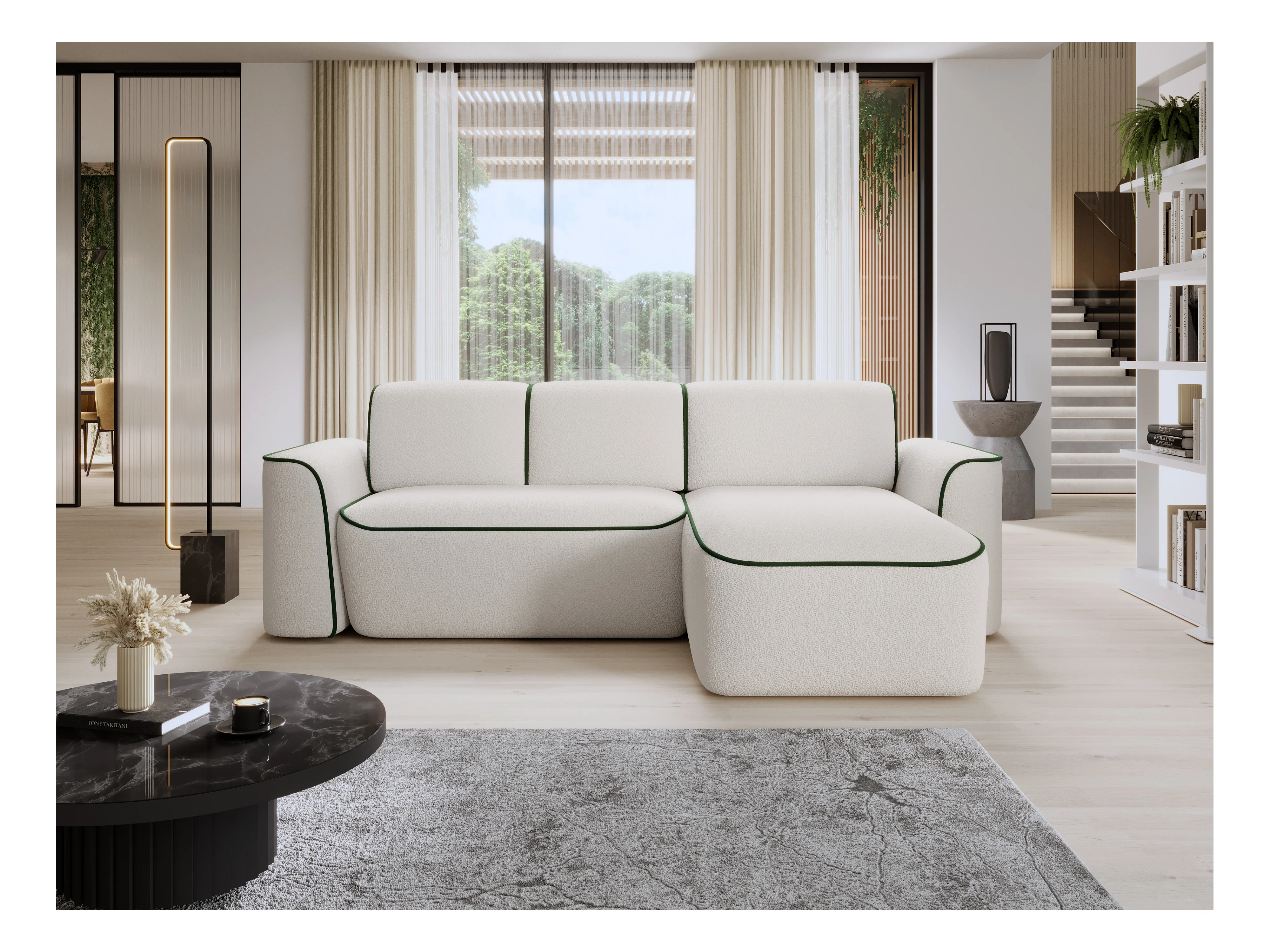 Divano d'angolo Alexa R/Tessuto-Bianco&Verde