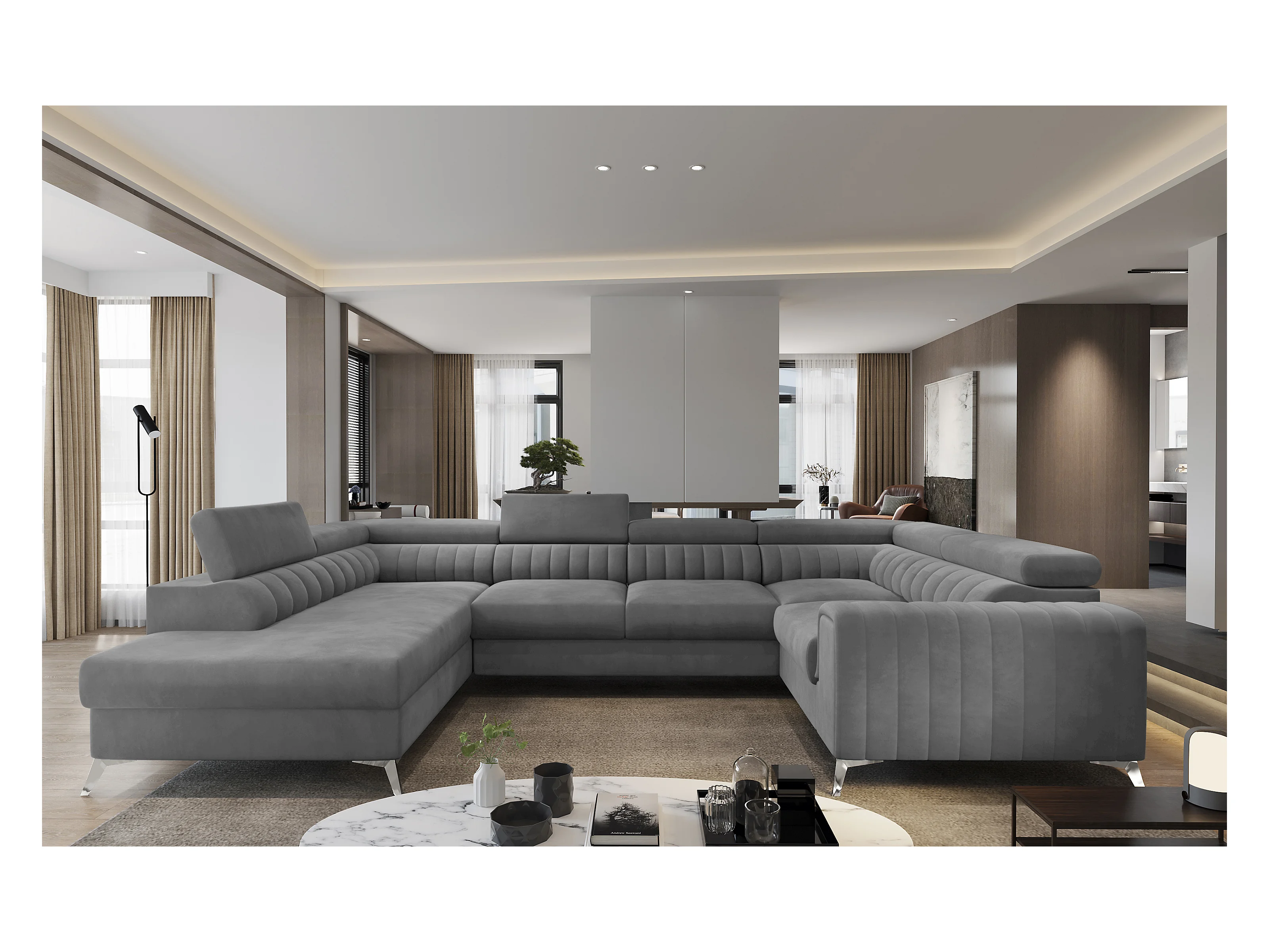 Divano angolare FALIO a U con funzione letto, tessuto Noel, grafite