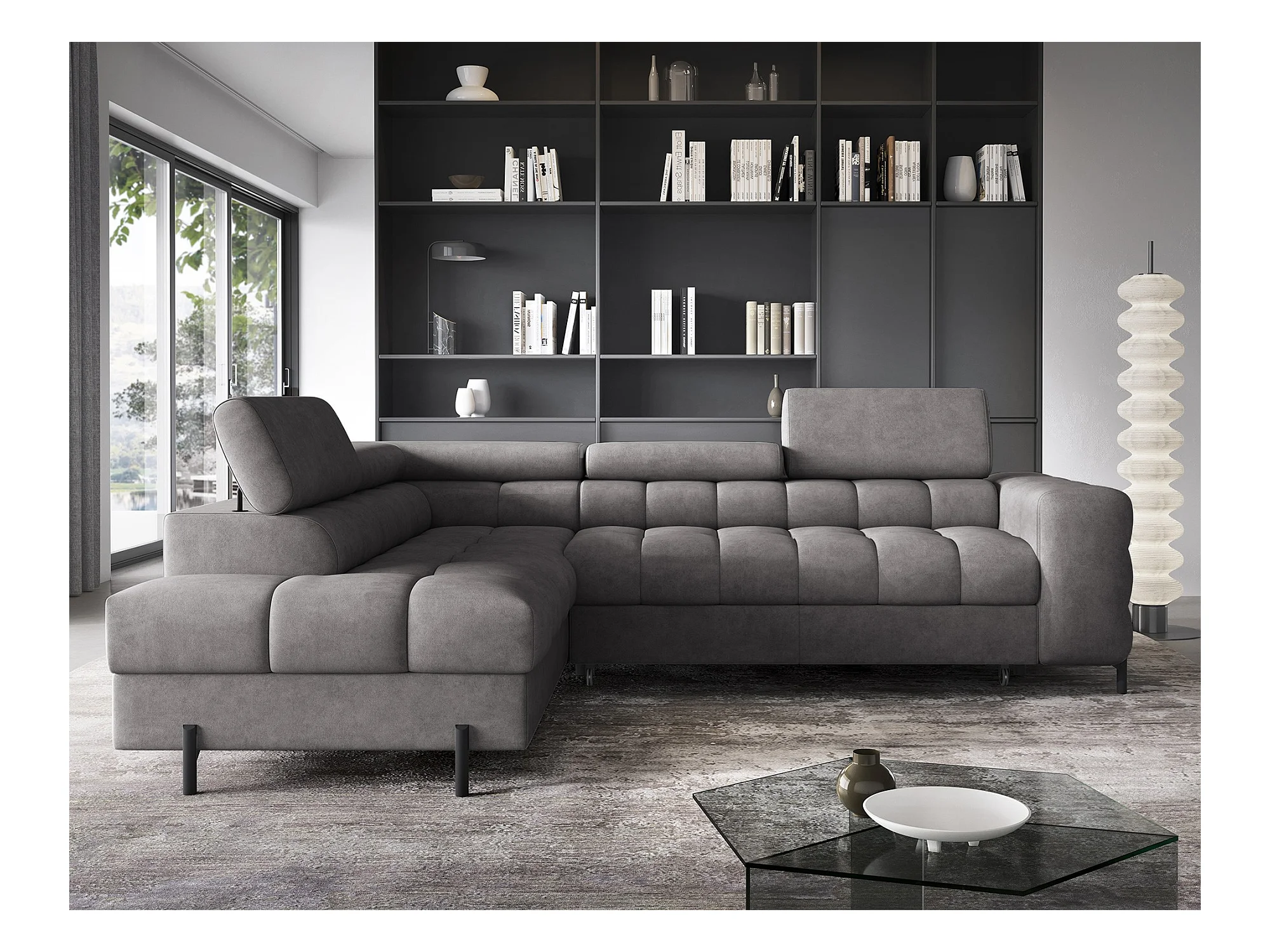 Divano d'angolo Nestro L/Tessuto-Grigio
