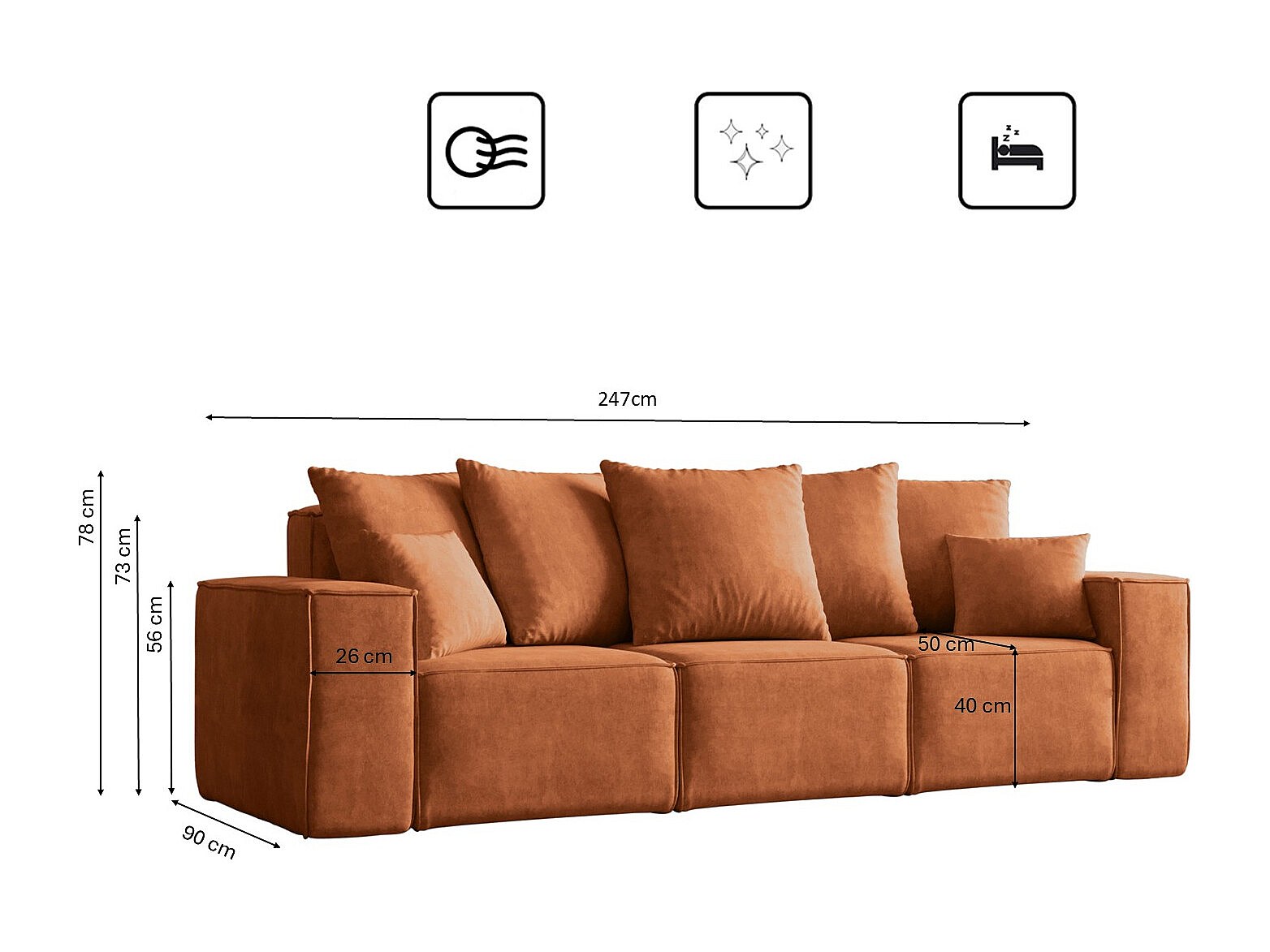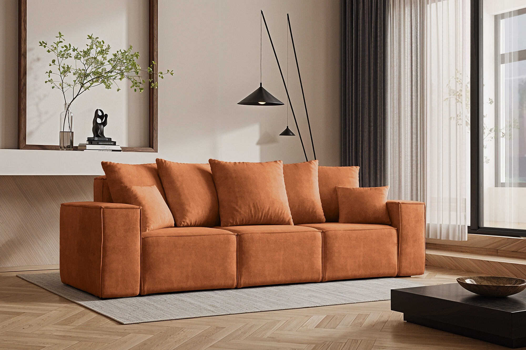Divano, divano a tre posti ELLA, tessuto Noel, arancione