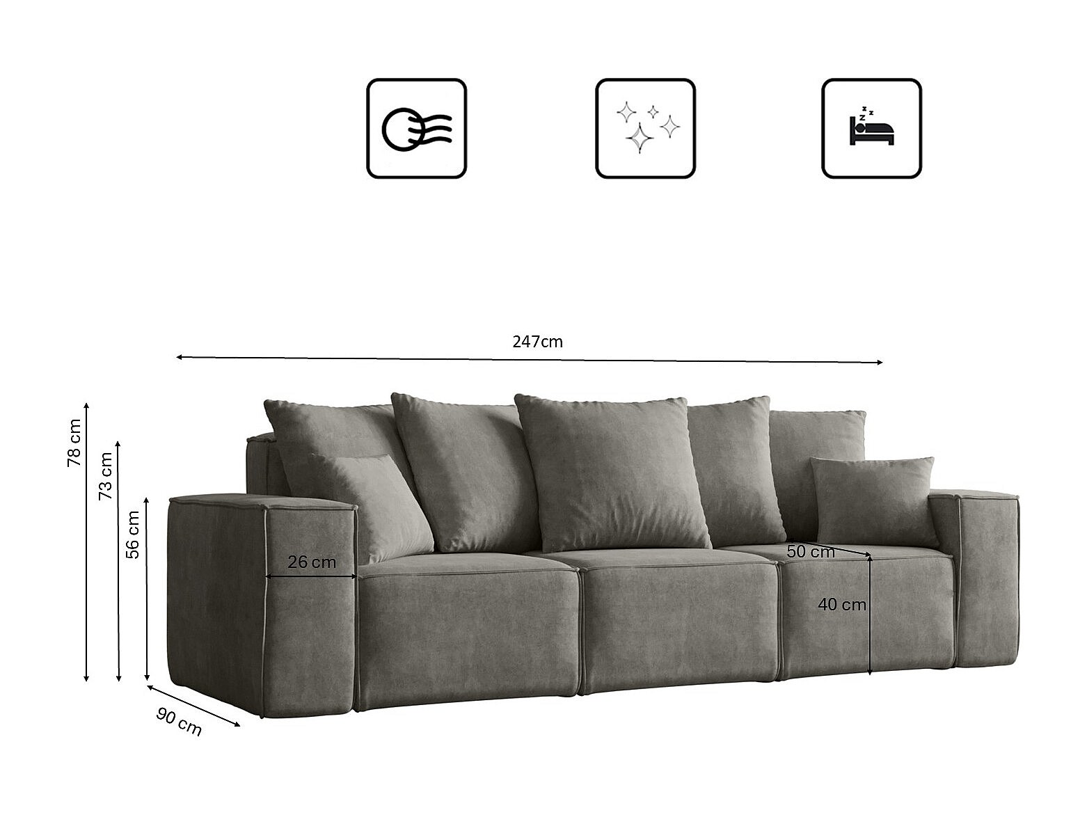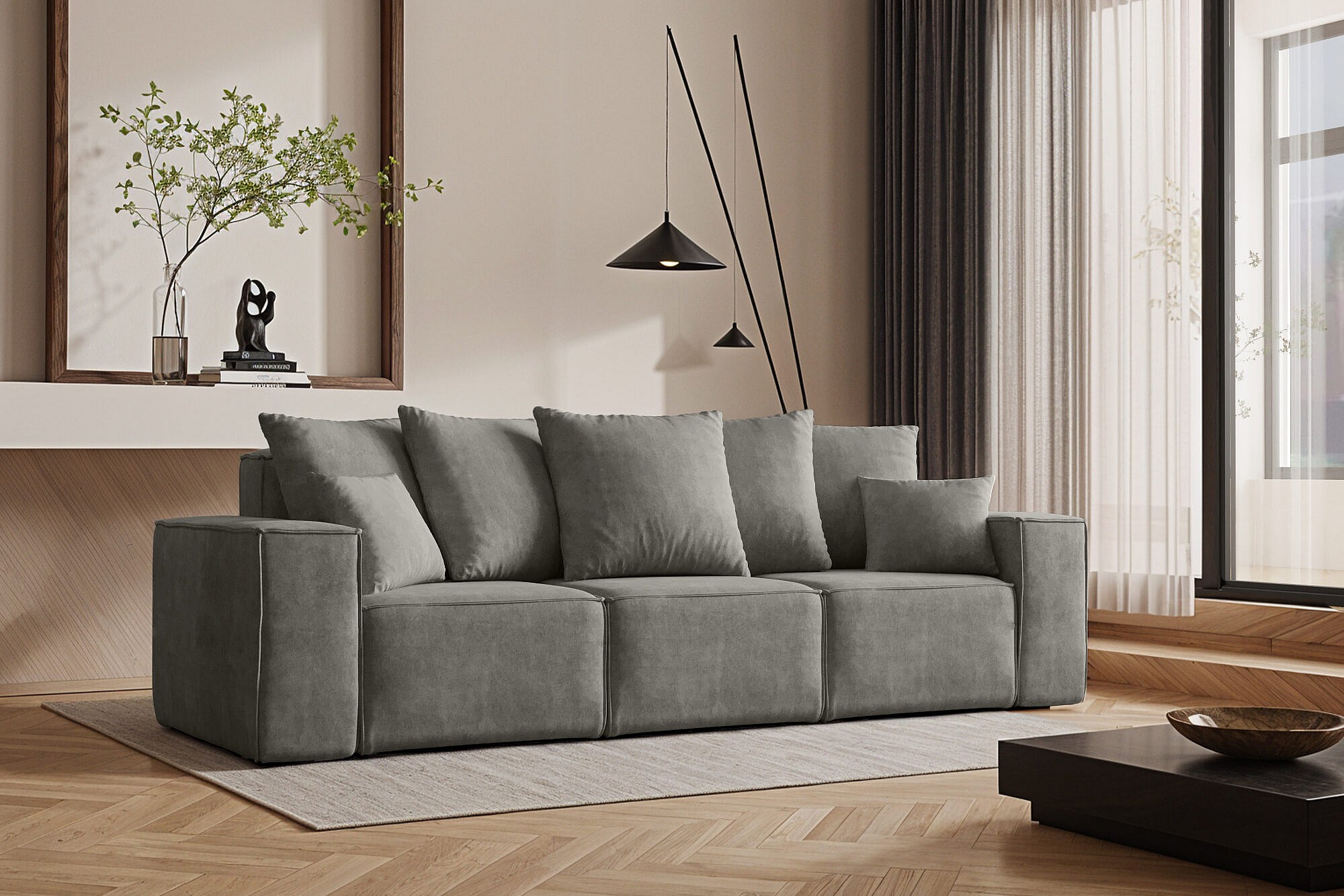 Divano, divano a tre posti ELLA, tessuto Noel, grigio