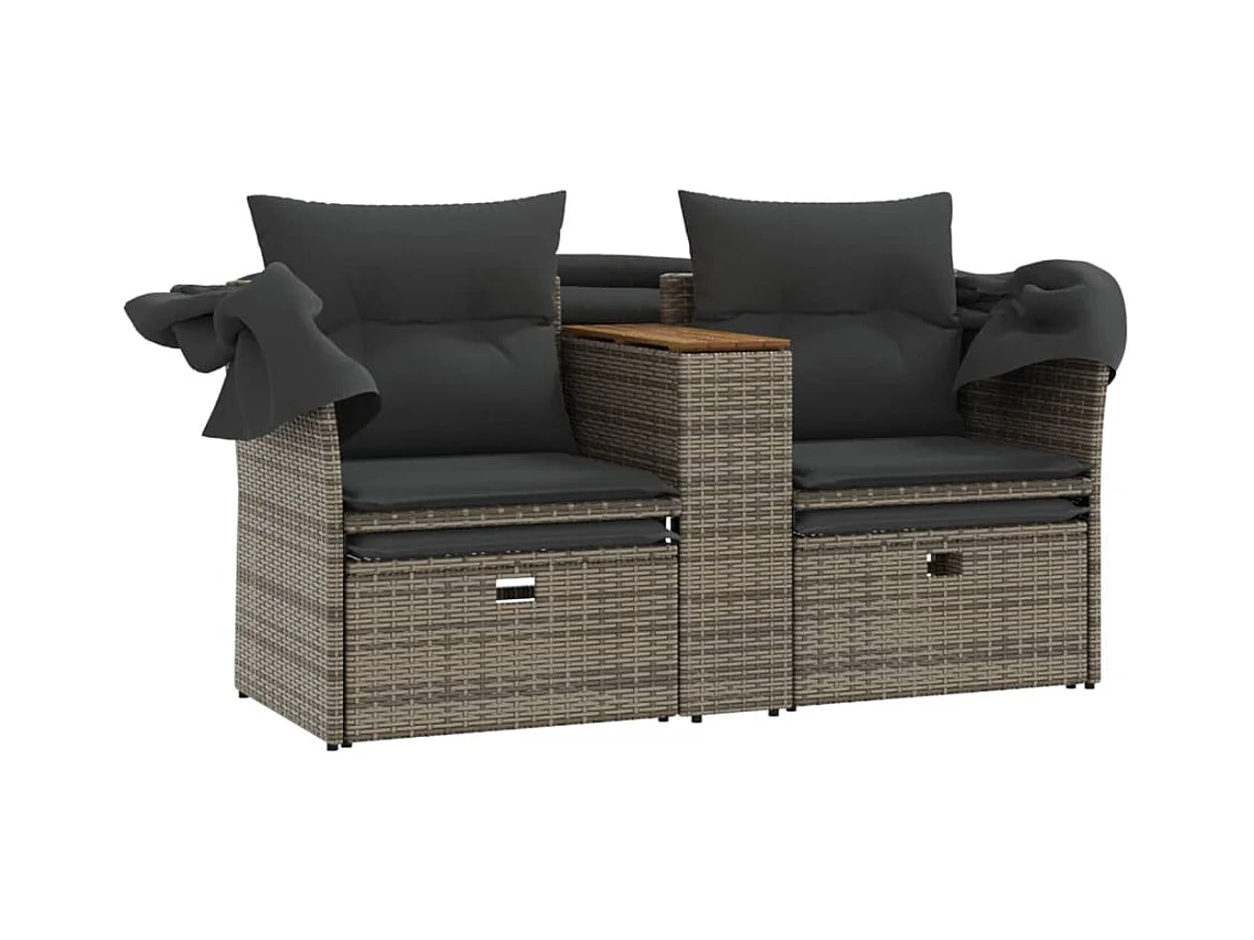 Divano Giardino 2 Posti con Tavolo e Sgabelli Grigio Polyrattan