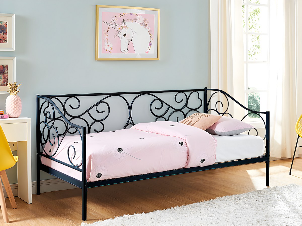 Divano letto 90 x 200 cm Metallo Nero + materasso - VIVIAN
