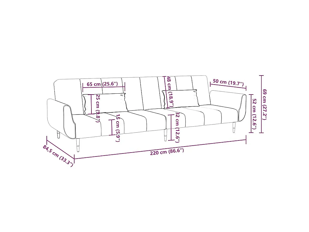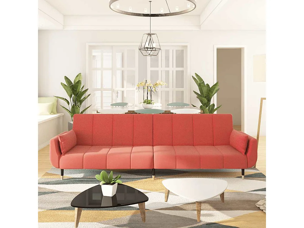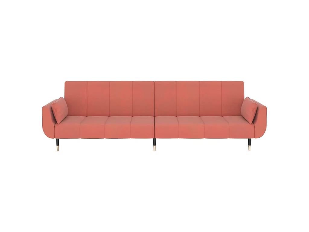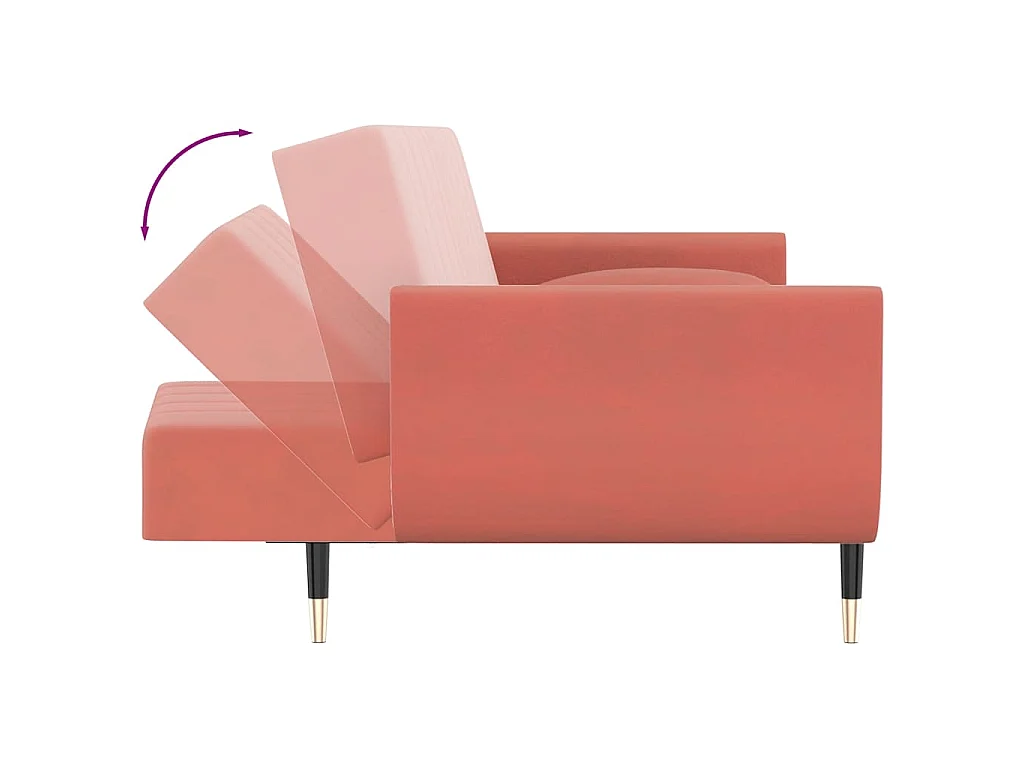 Divano Letto a 2 Posti con 2 Cuscini Rosa in Velluto