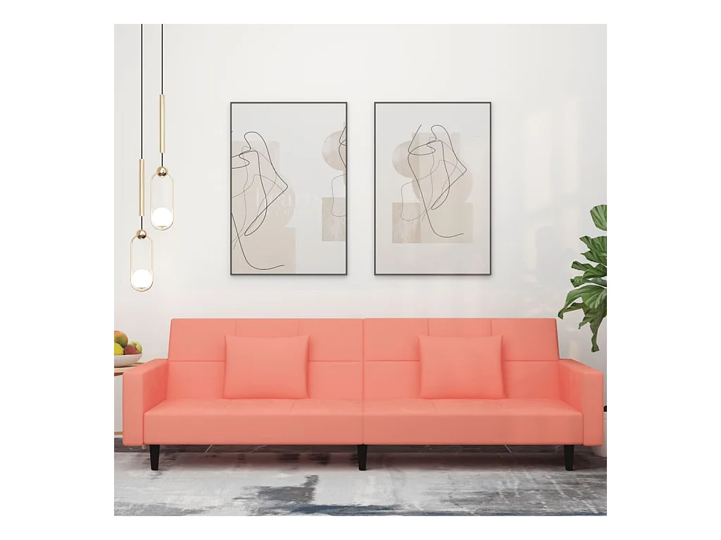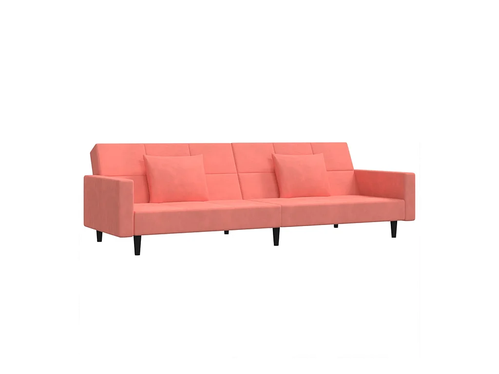 Divano letto a 2 posti con due cuscini in velluto rosa
