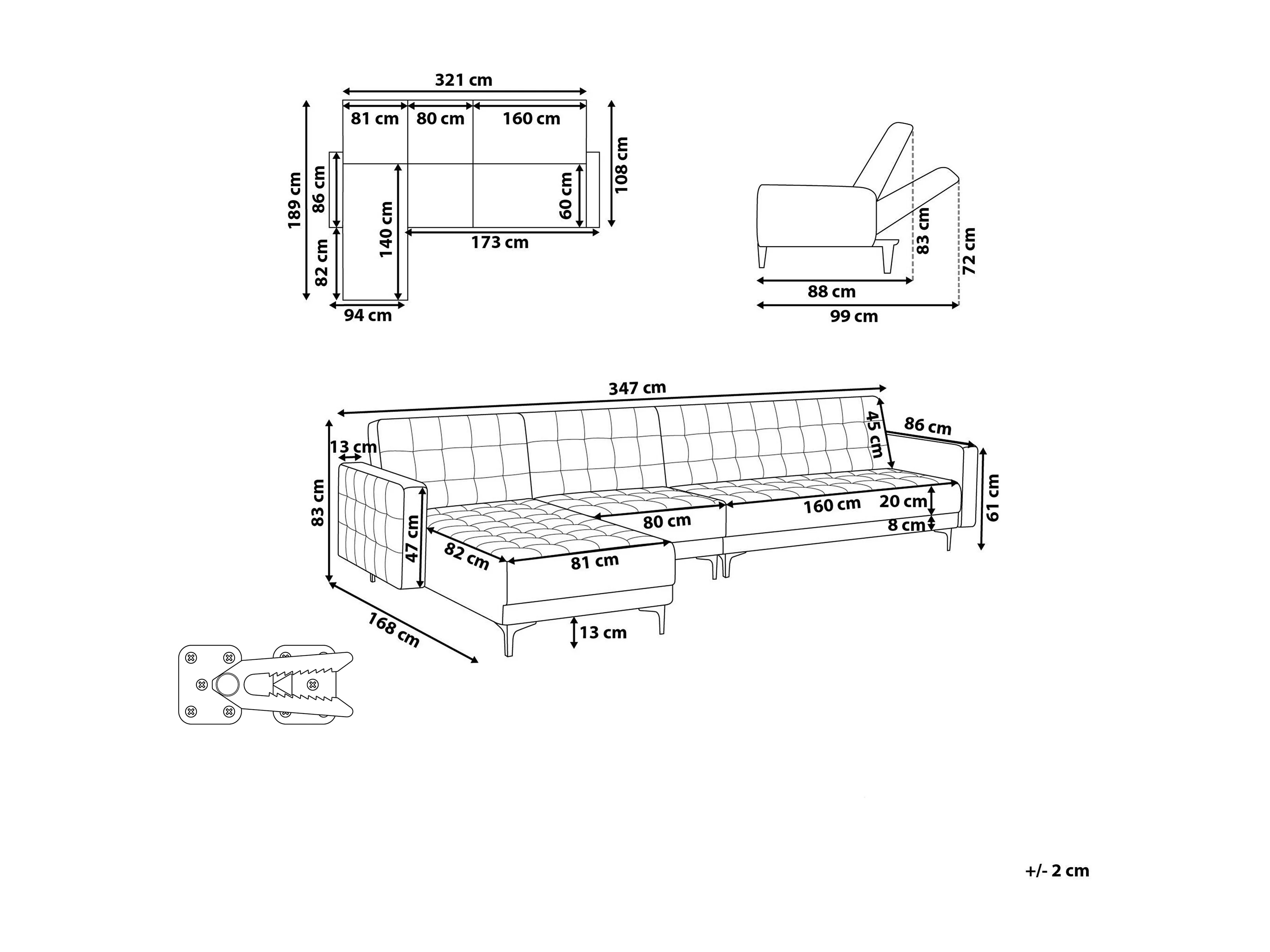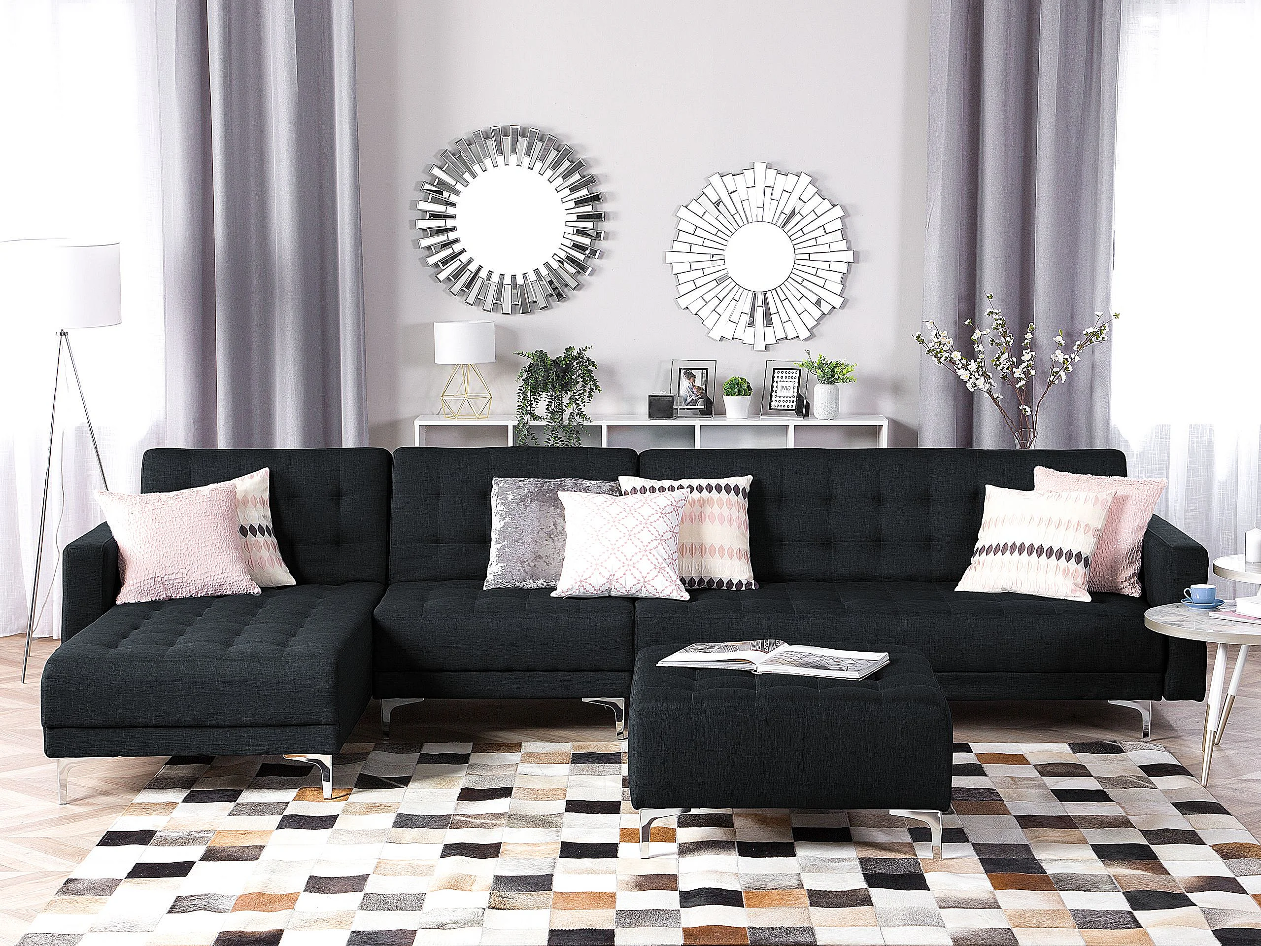 Divano letto angolare modulare ABERDEEN Tessuto Grigio grafite 5 posti Lato destro