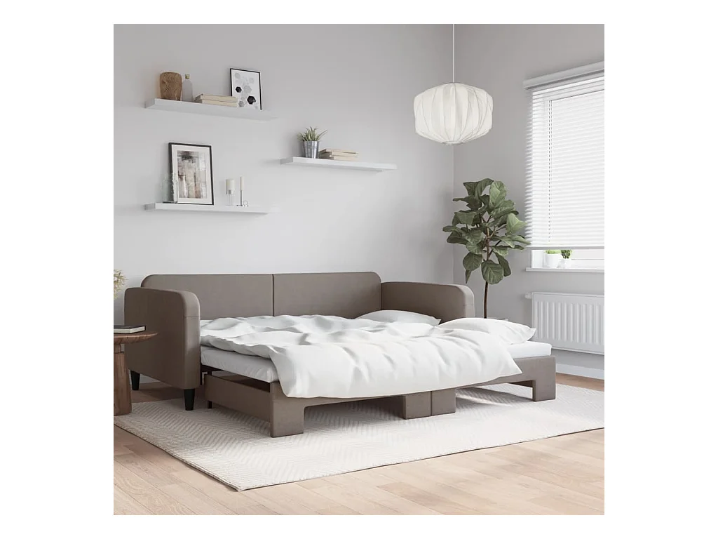 Divano letto con letto estraibile in tessuto tortora 100x200 cm