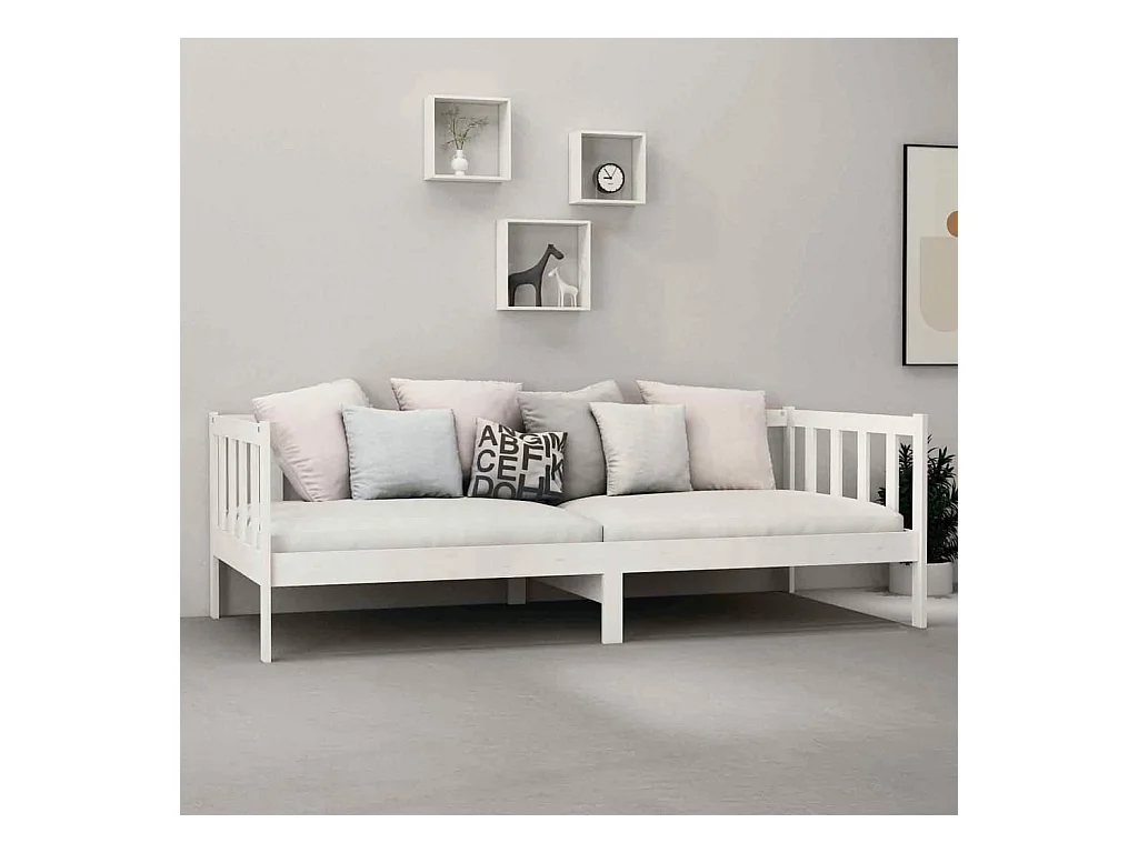 Divano letto e cassetti senza materasso bianco 90x200 cm in legno massello