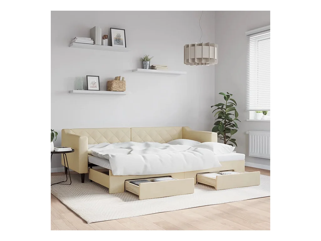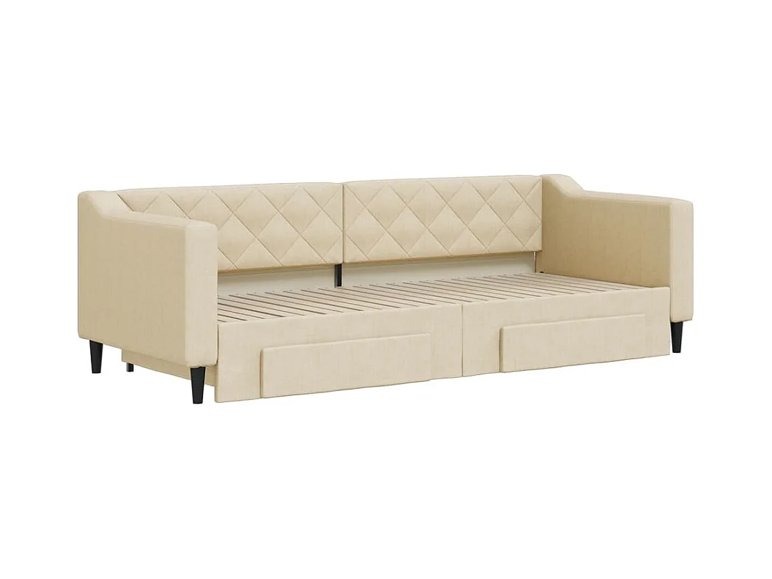 Divano letto con rotelle e cassetti senza materasso color crema 80x200cm