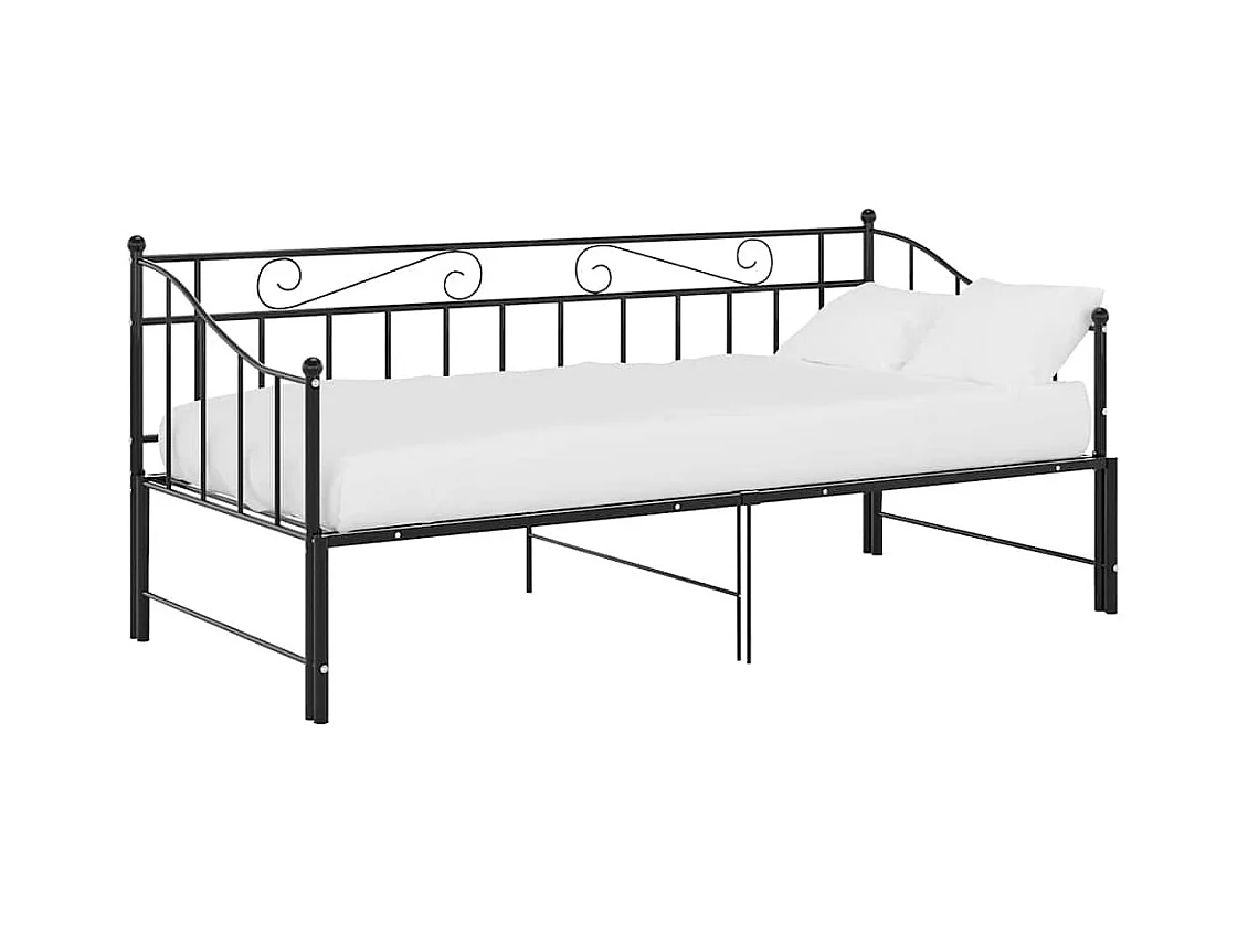 Divano letto estensibile senza materasso in metallo nero 90x200cm