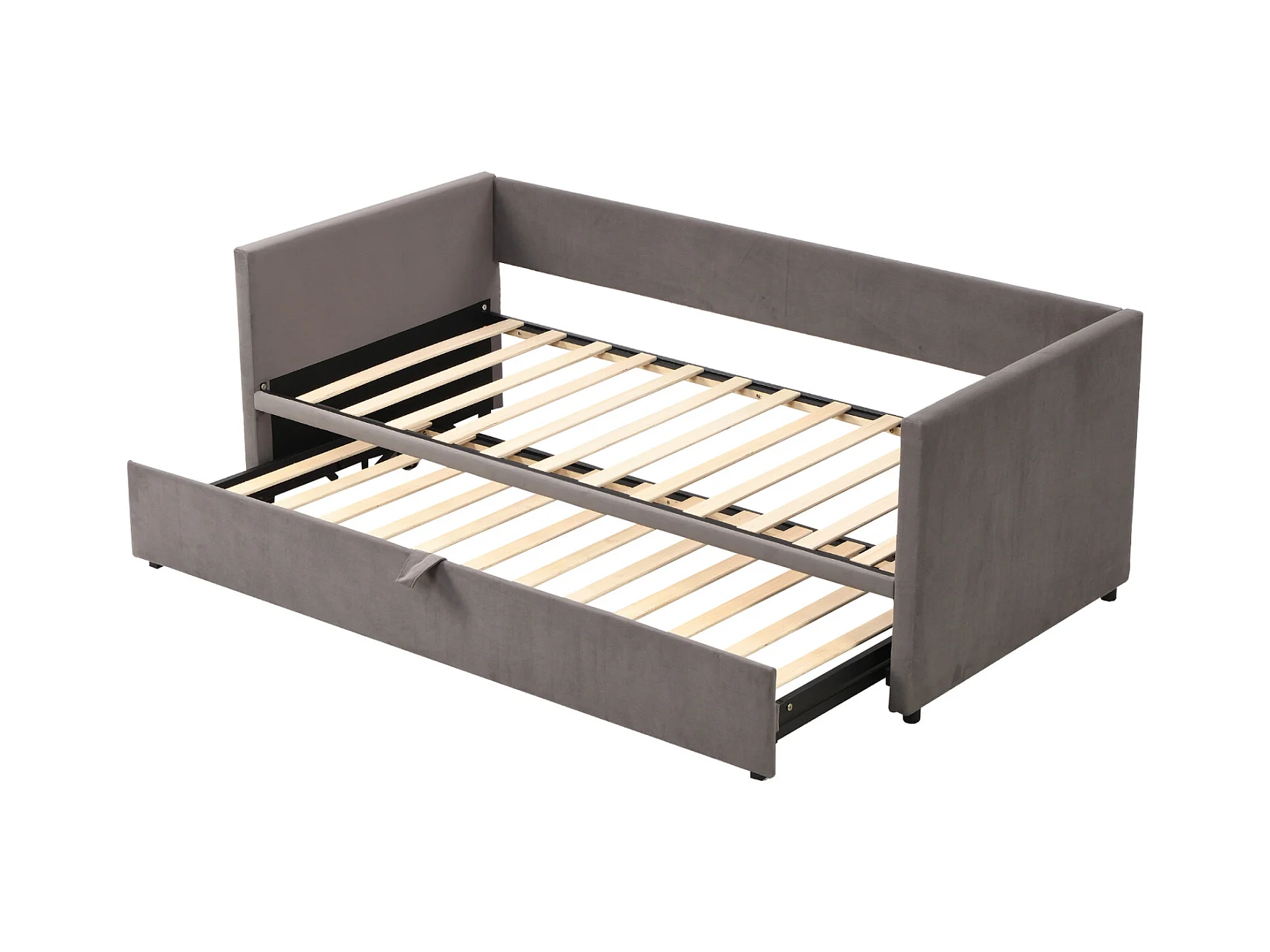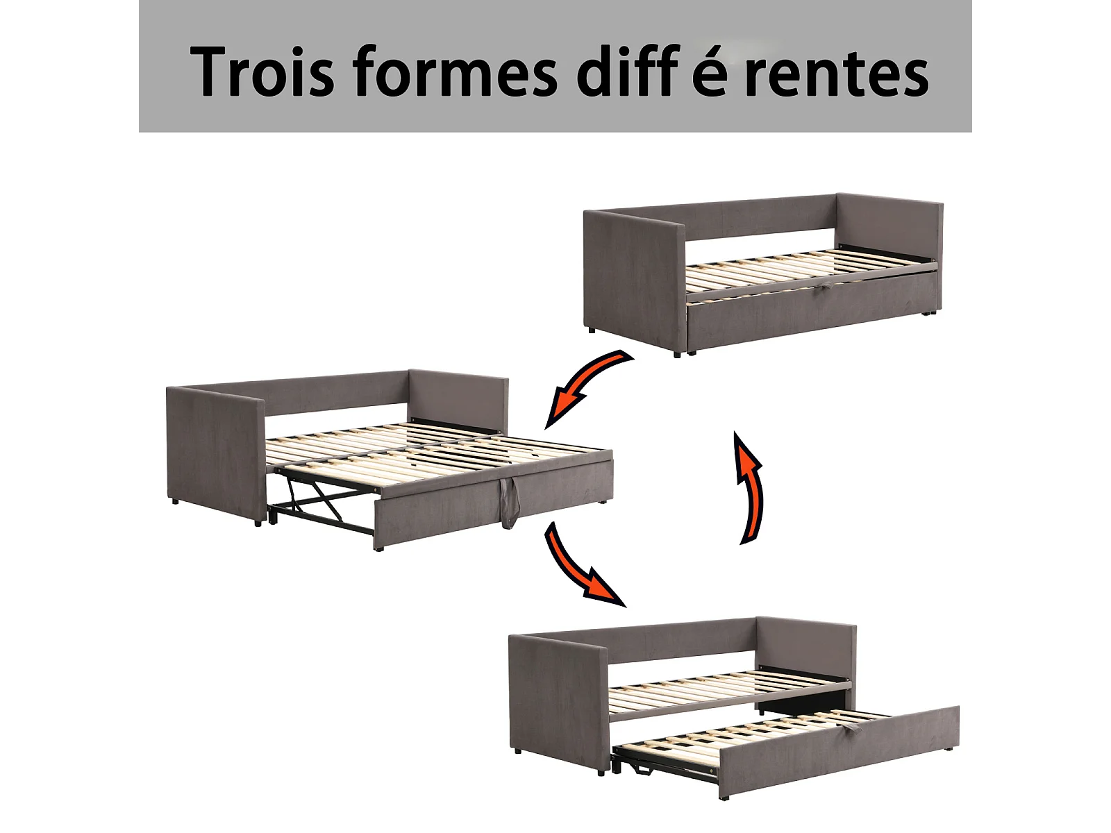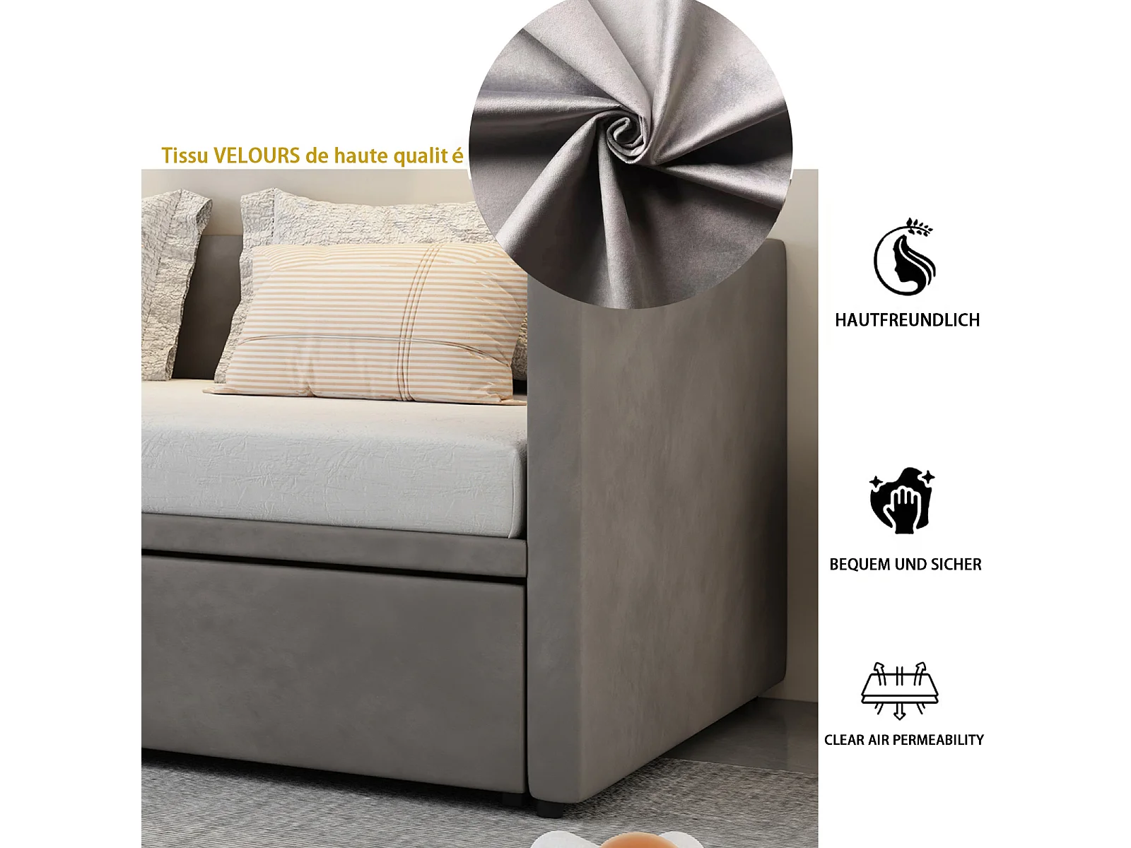 Divano letto estraibile 90/180*200 cm con rete a doghe in velluto delicato sulla pelle, grigio