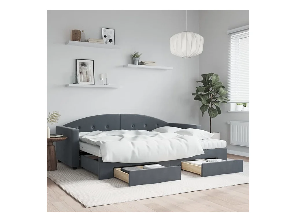Divano Letto Estraibile Cassetti Grigio Scuro 80x200cm Velluto
