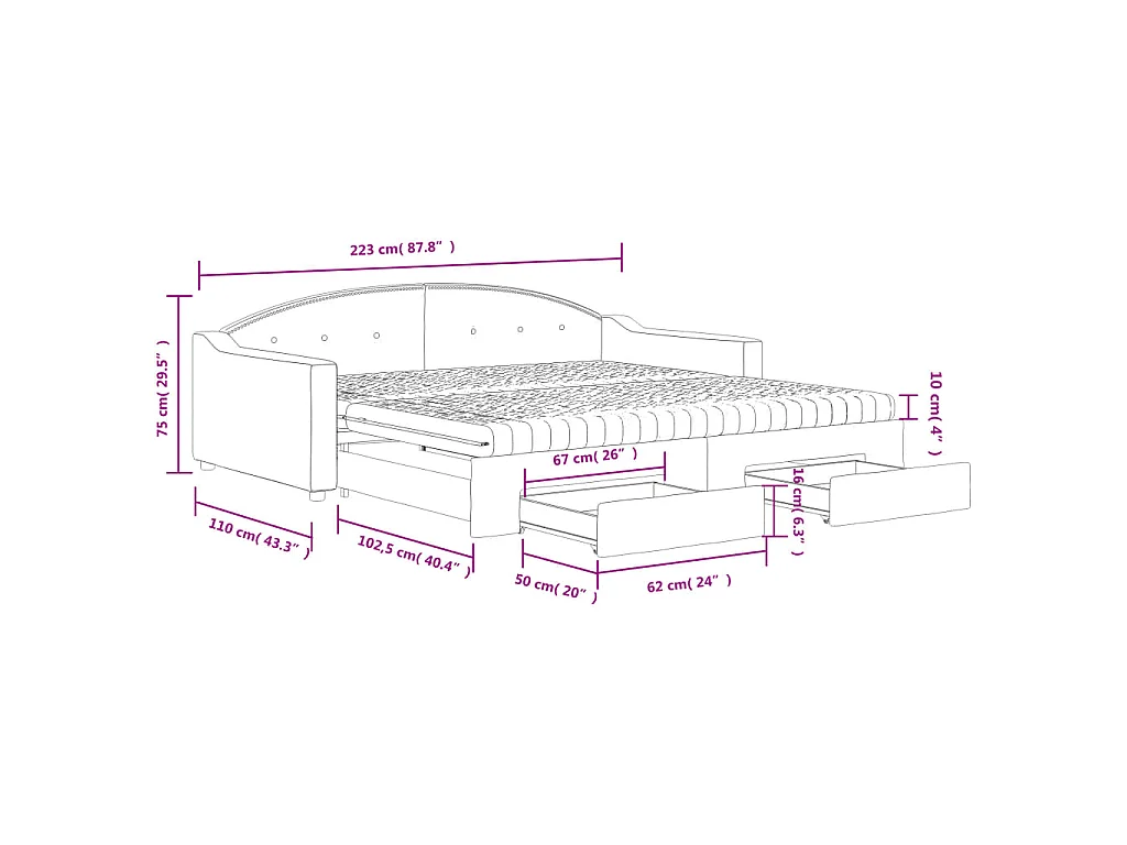 Divano Letto Estraibile con Cassetti Tortora 100x200 cm Tessuto