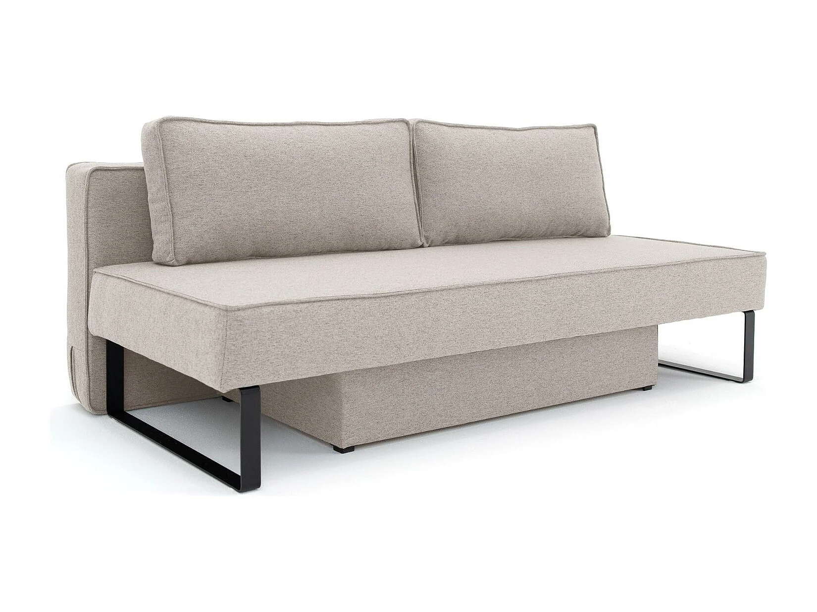 Divano letto NOMI con contenitore e funzione letto, tessuto Faro, grigio chiaro