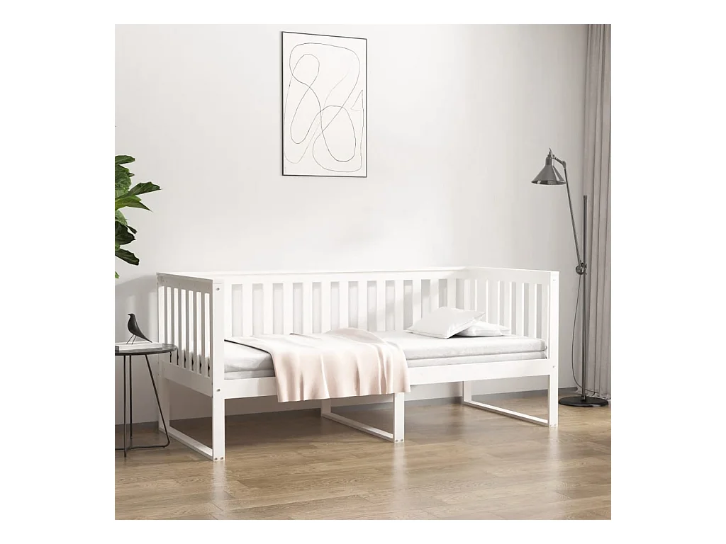 Divano letto senza materasso bianco 90x190 cm in legno massello di pino