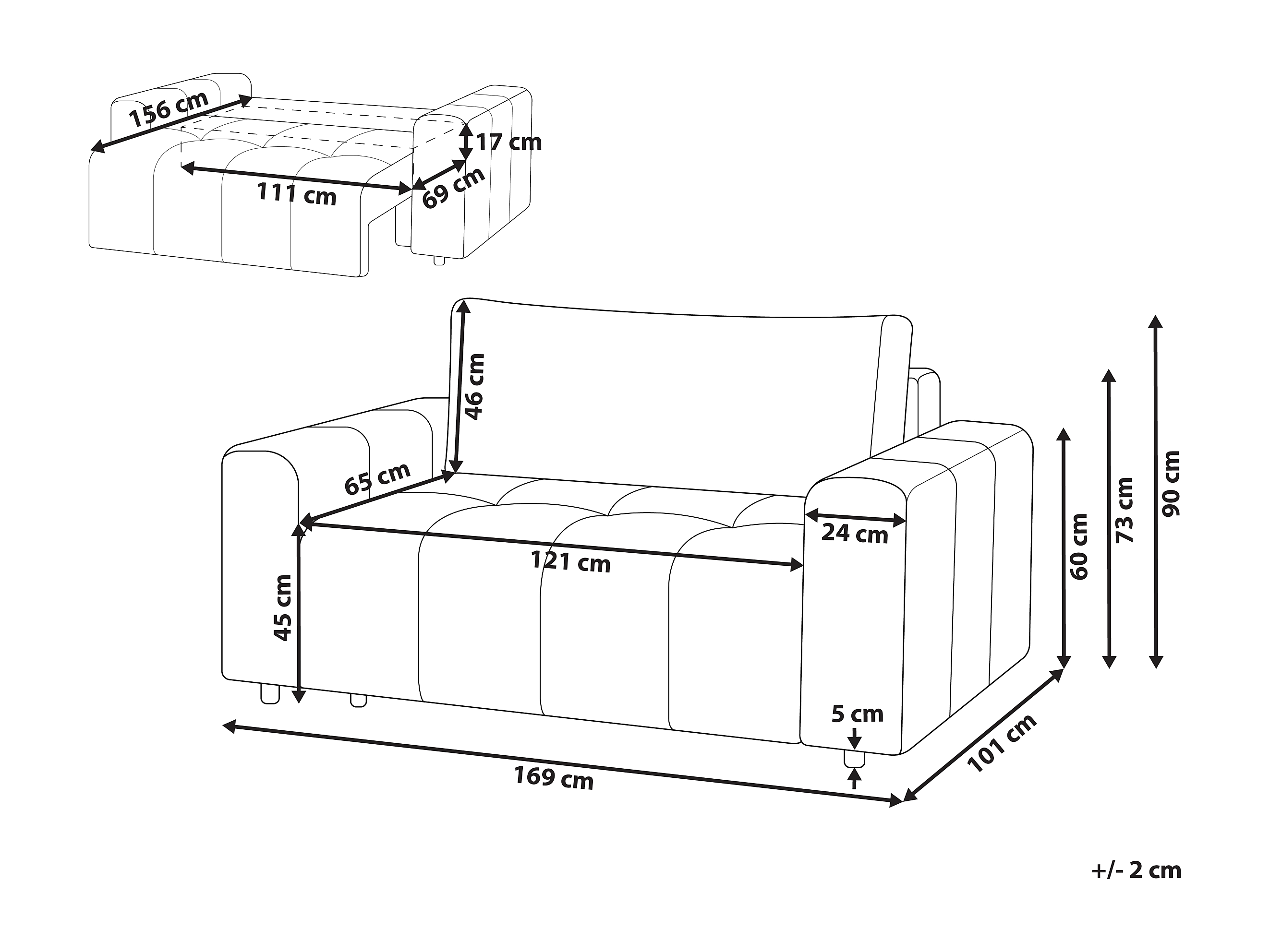 Divano letto INNVIK Tessuto Marrone con contenitore 2 posti
