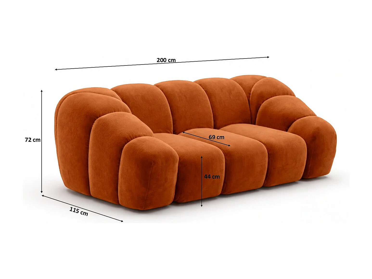 Divano modulare 2 posti, tessuto velluto Bluvel, color cannella, CROISSANT