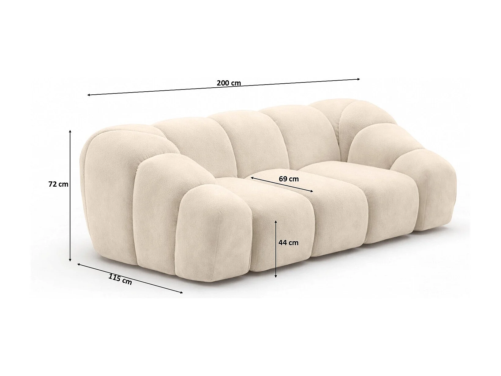 Divano modulare 2 posti, tessuto velluto Bluvel, crema, CROISSANT