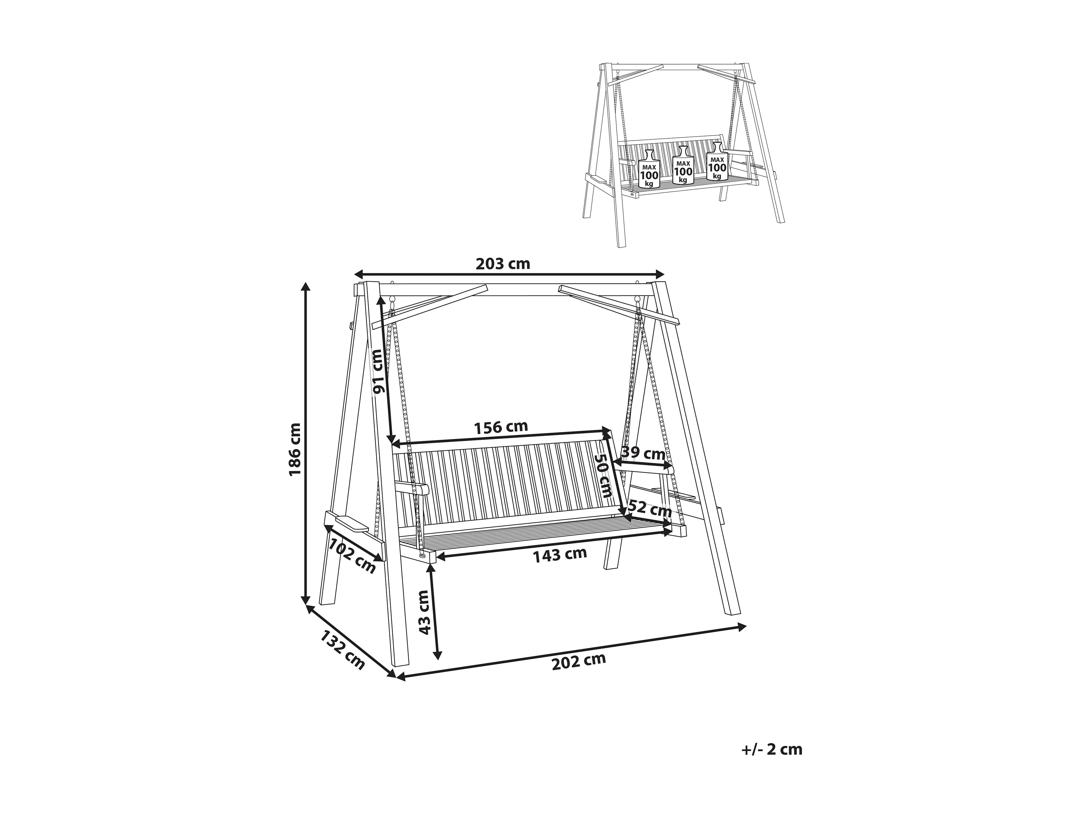 Dondolo da giardino FIBBIALLA Legno di abete Marrone