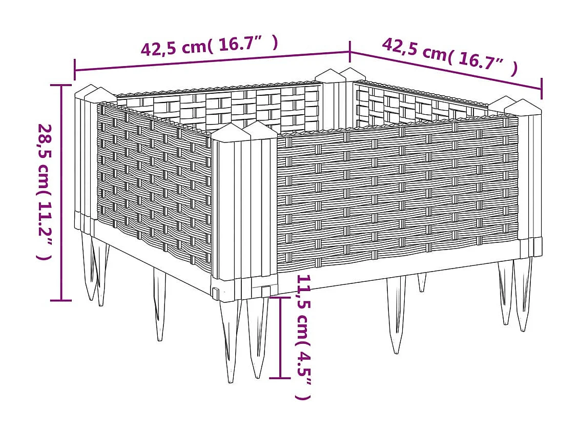 Fioriera da Giardino con Picchetti Bianca 42,5x42,5x28,5 cm PP