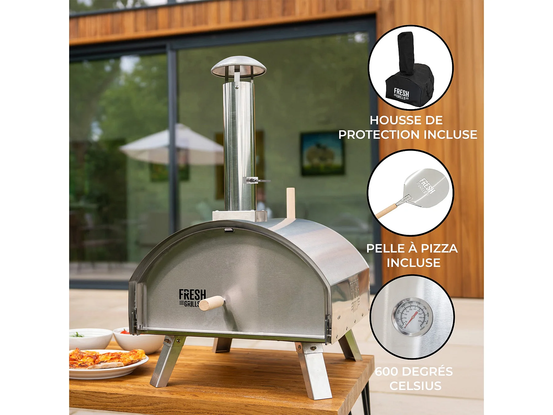 Forno da tavolo per pizza all'aperto 35cm in Acciaio Inox Extra Large Alimentazione a Legno Carbone Pellets