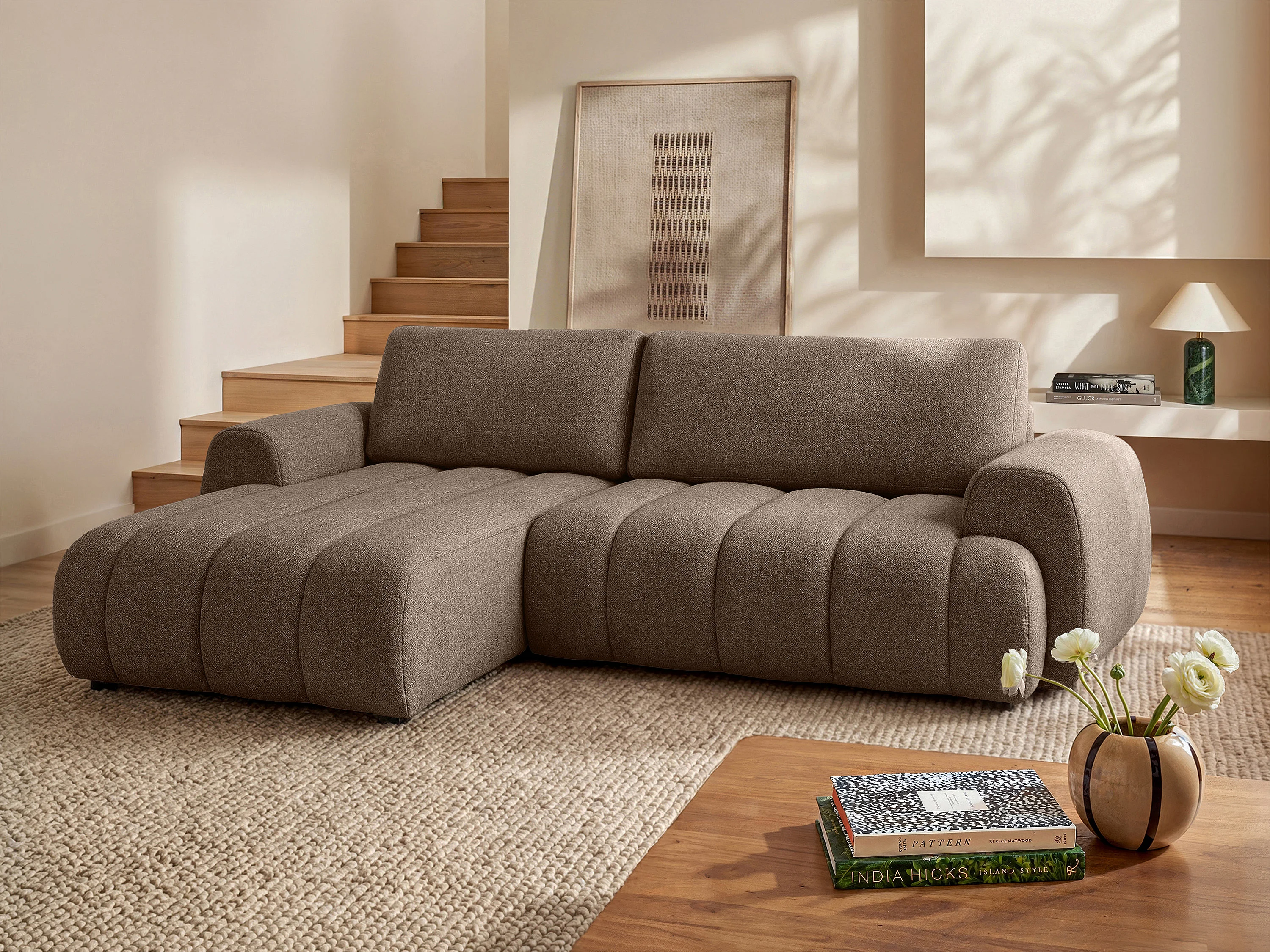 Divano angolare sinistro convertibile in tessuto tortora FRIDORA