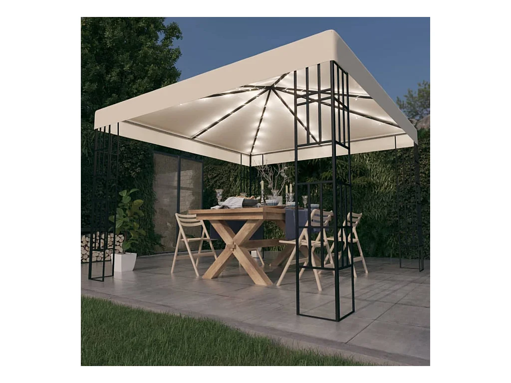 Gazebo con ghirlanda luminosa a LED 3x3 m Crema